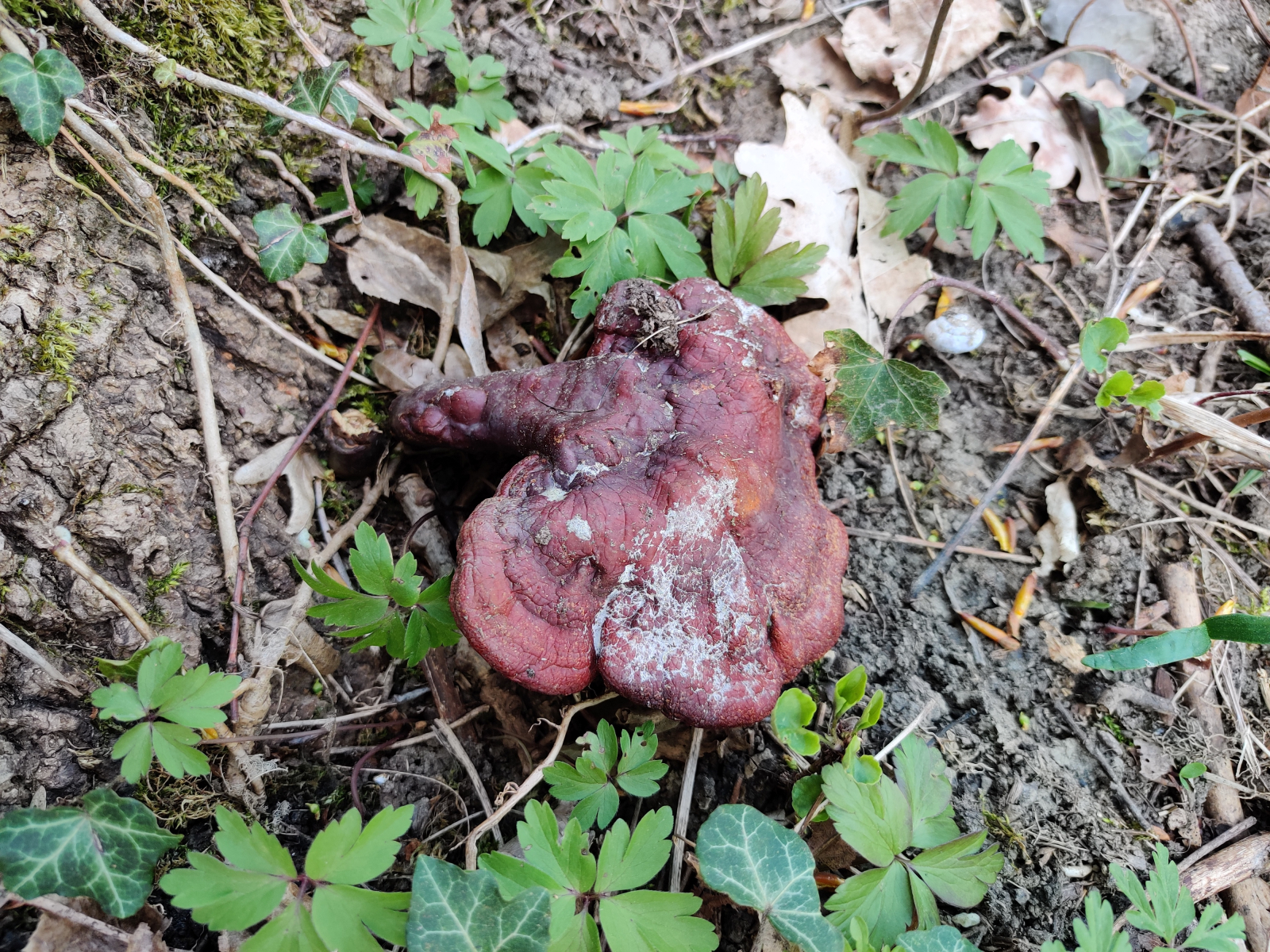 1.Als erstes hab ich am Fuß einer Esche den hier gefunden, das sollte der Glänzende Lackporling(Ganoderma lucidum) sein, nicht wahr? Wäre ein Erstfund für mich.^^