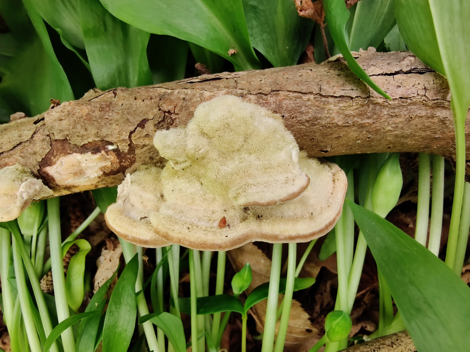 3.Und die hier, vielleicht die Striegelige Tramete(Trametes hirsuta). Im Internet stand, dass im Hutfleisch zwei Schichten erkennbar wären, die durch eine schwarze Linie getrennt seien. Das konnte ich nicht sehen. Eine bessere Idee hab ich aber leider nicht.
