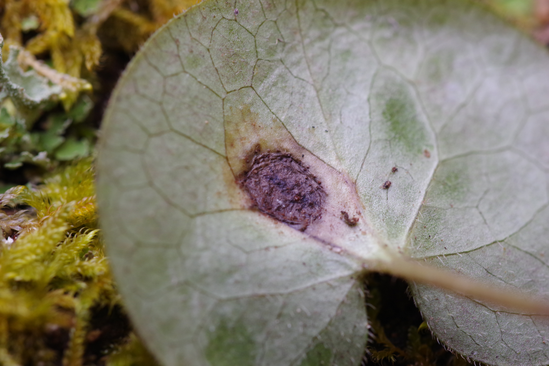 das war heute die dritte oder vierte Stelle, wo ich an Haselwurz nachgeschaut hab, und da war er gleich zu finden. Auch nur an einzelnen Blättern. Da die Pflanze hier insgesamt nicht selten ist, kann ich vielleicht demnächst eine repräsentativere Aussage treffen können, wie häufig der ist. Der Band der heimischen Funga, der der Gattung Puccinia gewidmet ist, erwähnt Belege aus 5 Kreisen (von ca. 60), ist allerdings von 1993.