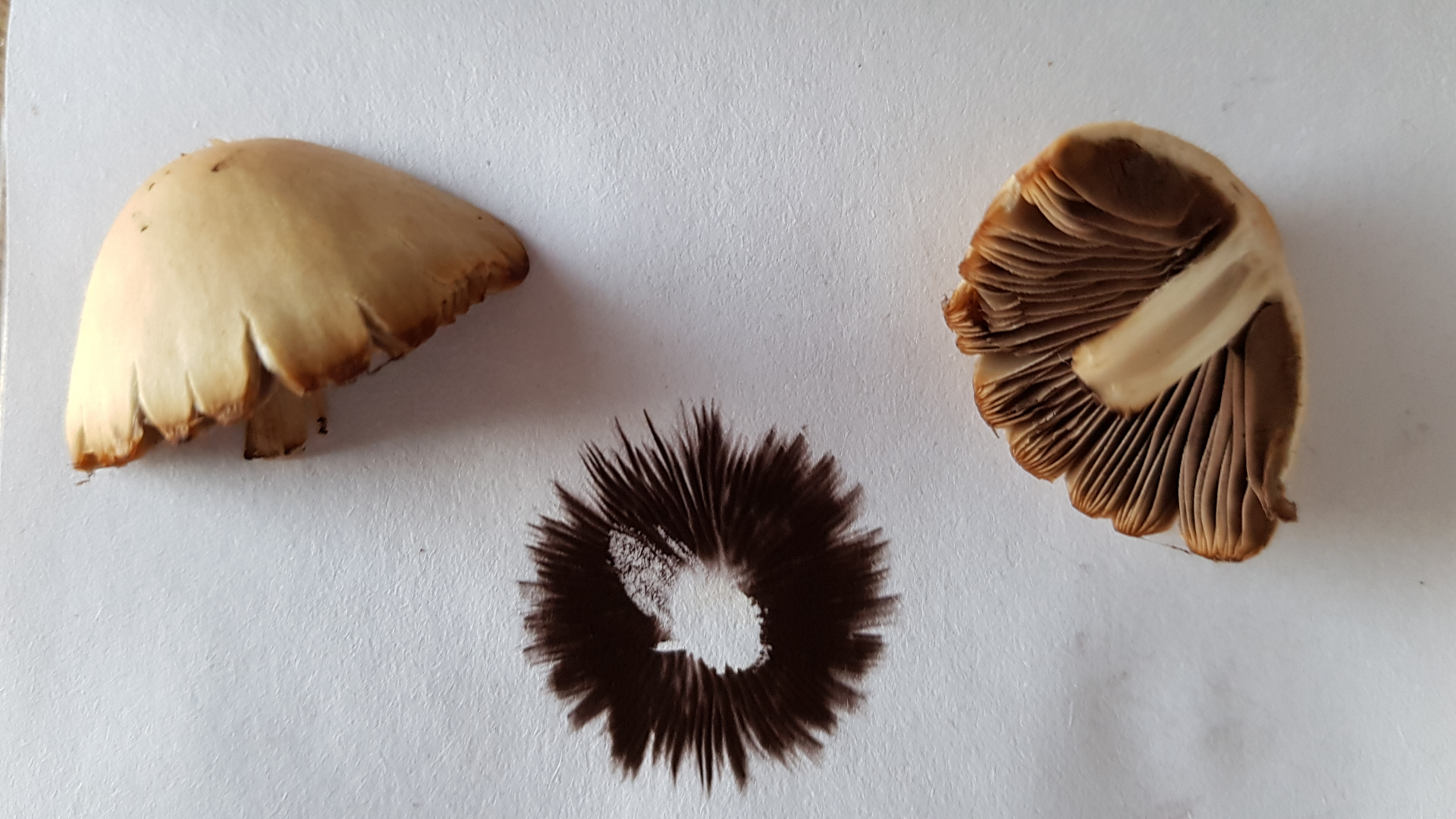 das Sporenpulver ist dunkelbraun bis schwarzbraun (nicht schwarz), womir Du zu Schlüsel F kommst und dann weiter zu Schlüssel G.