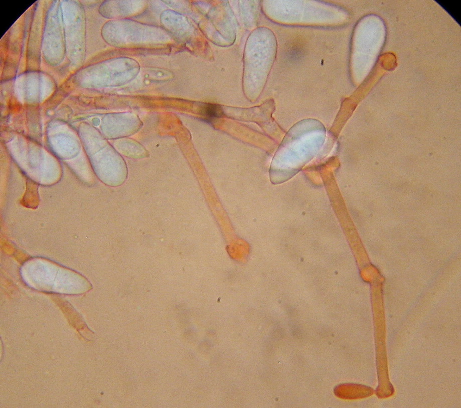 Sporen: 21-27 x 10-13µ, keulig und einfach septiert