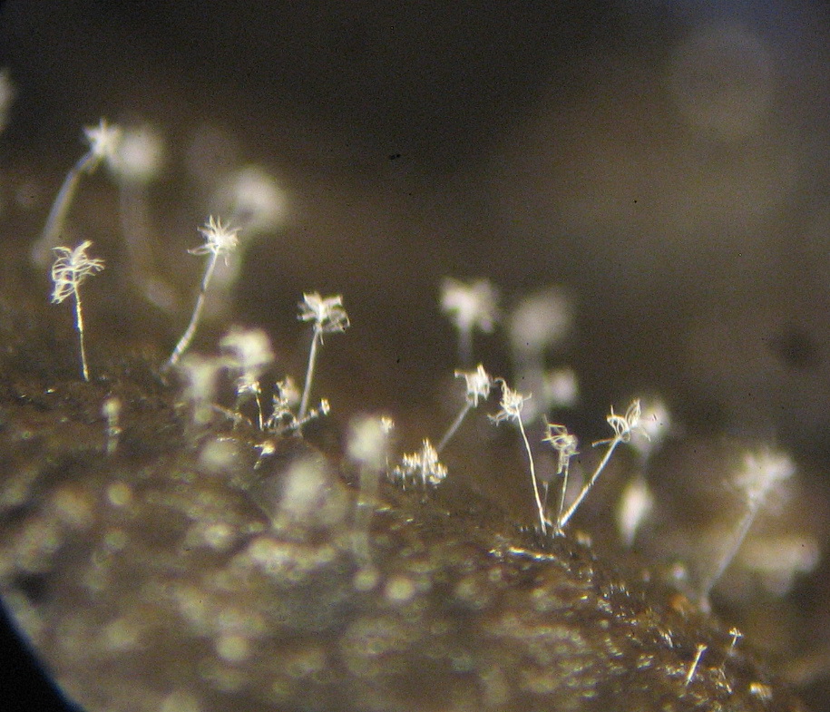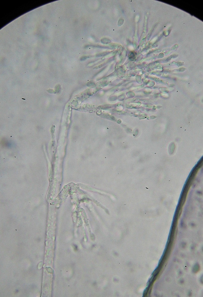 Die Gebilde sind bis 550 x 12µ hoch, von der Basis an verzweigt, zur Spitze mit Phialiden