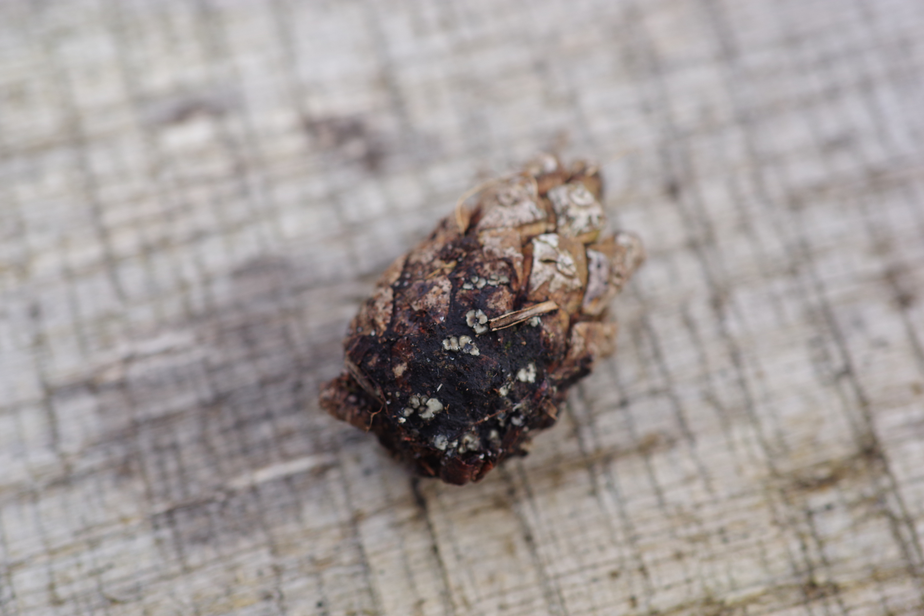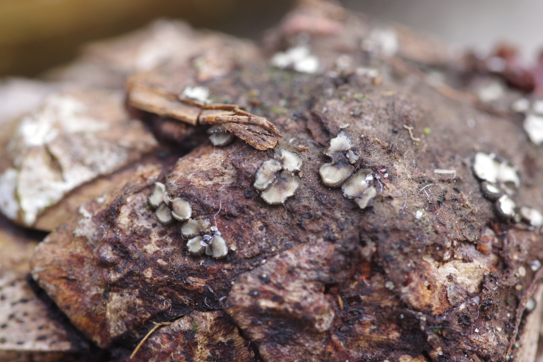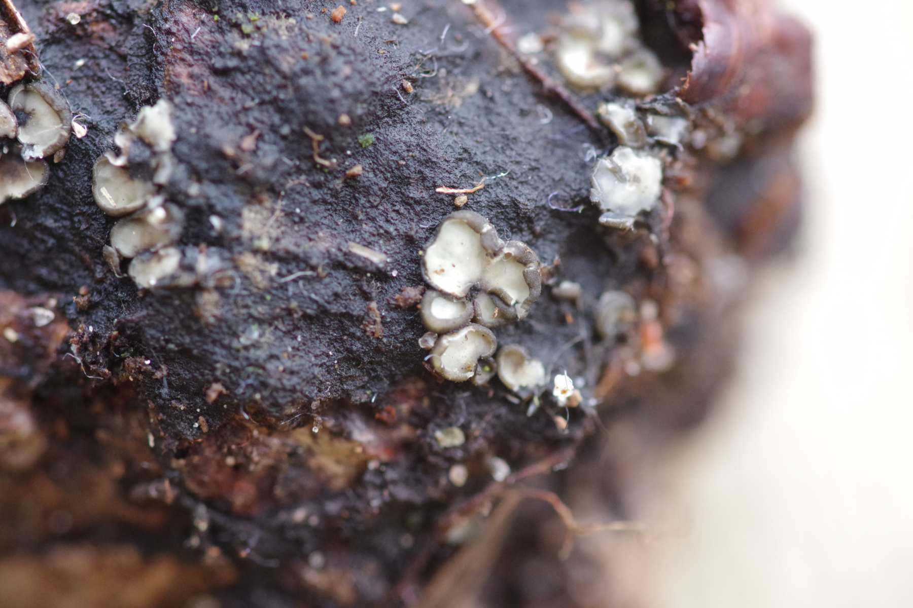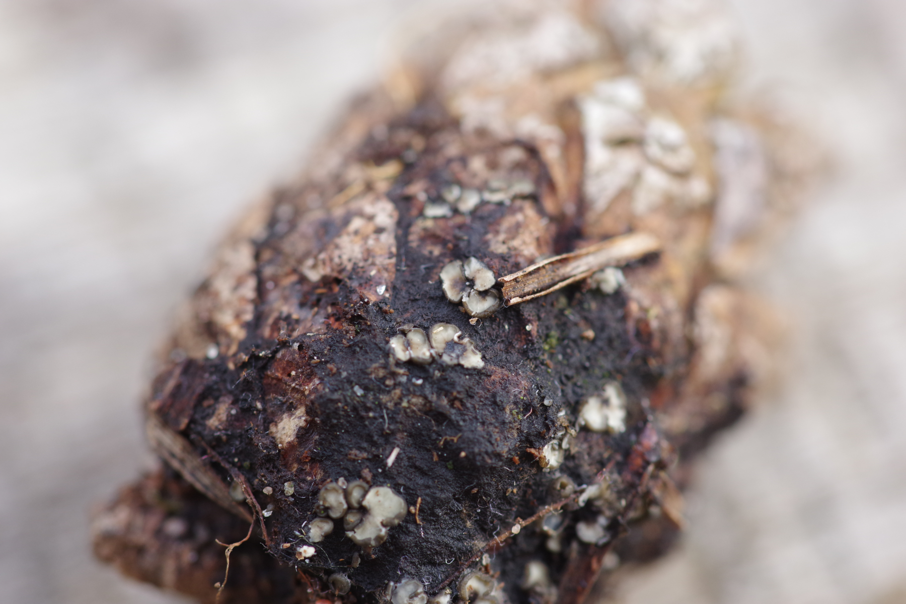 Moin, an einem Kieferzapfen habe ich diesen Becher gefunden, der wohl ziemlich sicher makroskopisch als eine Mollisia anzusprechen ist. Beim Durchblättern des Schlüssels (Kutorga 2020), ob das Substrat relevant sein kann, gibt es genau eine Art "Wächst auf Pinus-Zapfen" → M. strobilicola. Da die Literatur ziemlich neu ist, bin ich geneigt, dem sogar Glauben zu schenken. Gibt es Widerspruch oder Bestätigung?