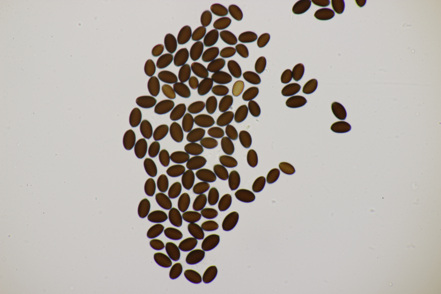1. Pilobolus roridus. Sporen messen (5.9-7.7) µm x (3.5-4.6) µm, Q=1.5-1.7
