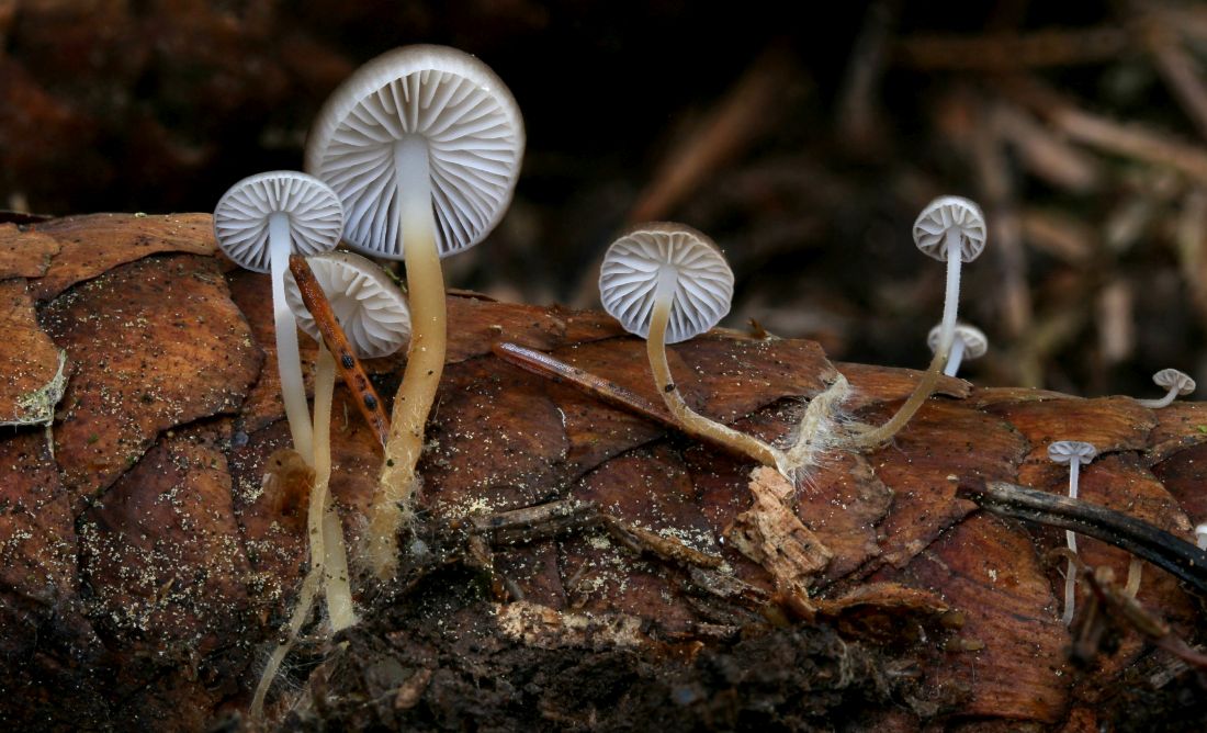 Überall hier Massenpilz ist der Fichtenzapfenrübling, Strobilurus esculentus: