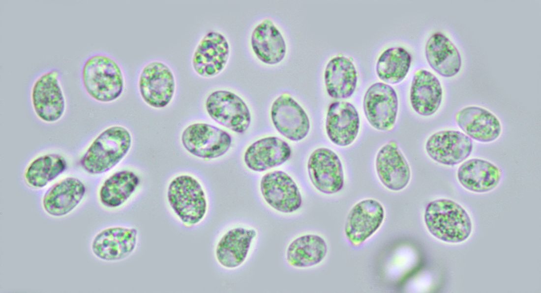 Im Gegensatz dazu besitzt P. lignicola eine Schleimhülle die die komplette Spore zentral umhüllt.