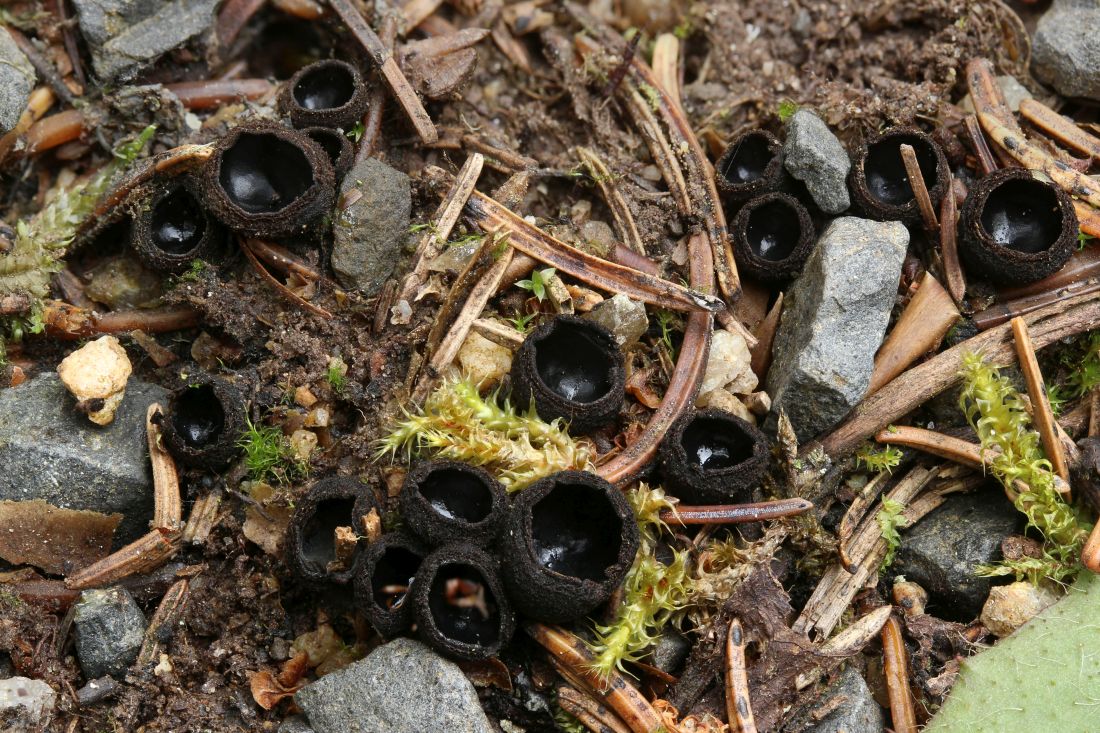 Pseudoplectania nigrella ist hier auch relativ häufig, in fast jedem geeigneten Biotop zu finden. Allein dieses Jahr kamen 3 neue Standorte dazu, an einem davon fanden sich ca. 150 Exemplare entlang eines Wegs: