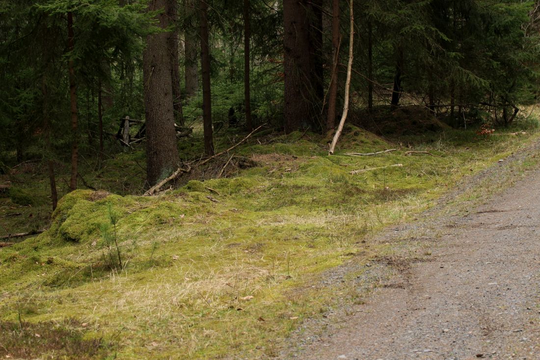 an solchen Wegrändern finde ich immer wieder Interessantes, oft viel mehr als im Inneren der Wälder. Der Standort der Pseudoplectania nigrella auf Bild 5 war hier links auf einem moosigen Erdhügel, der beim Wegebau entstanden ist: