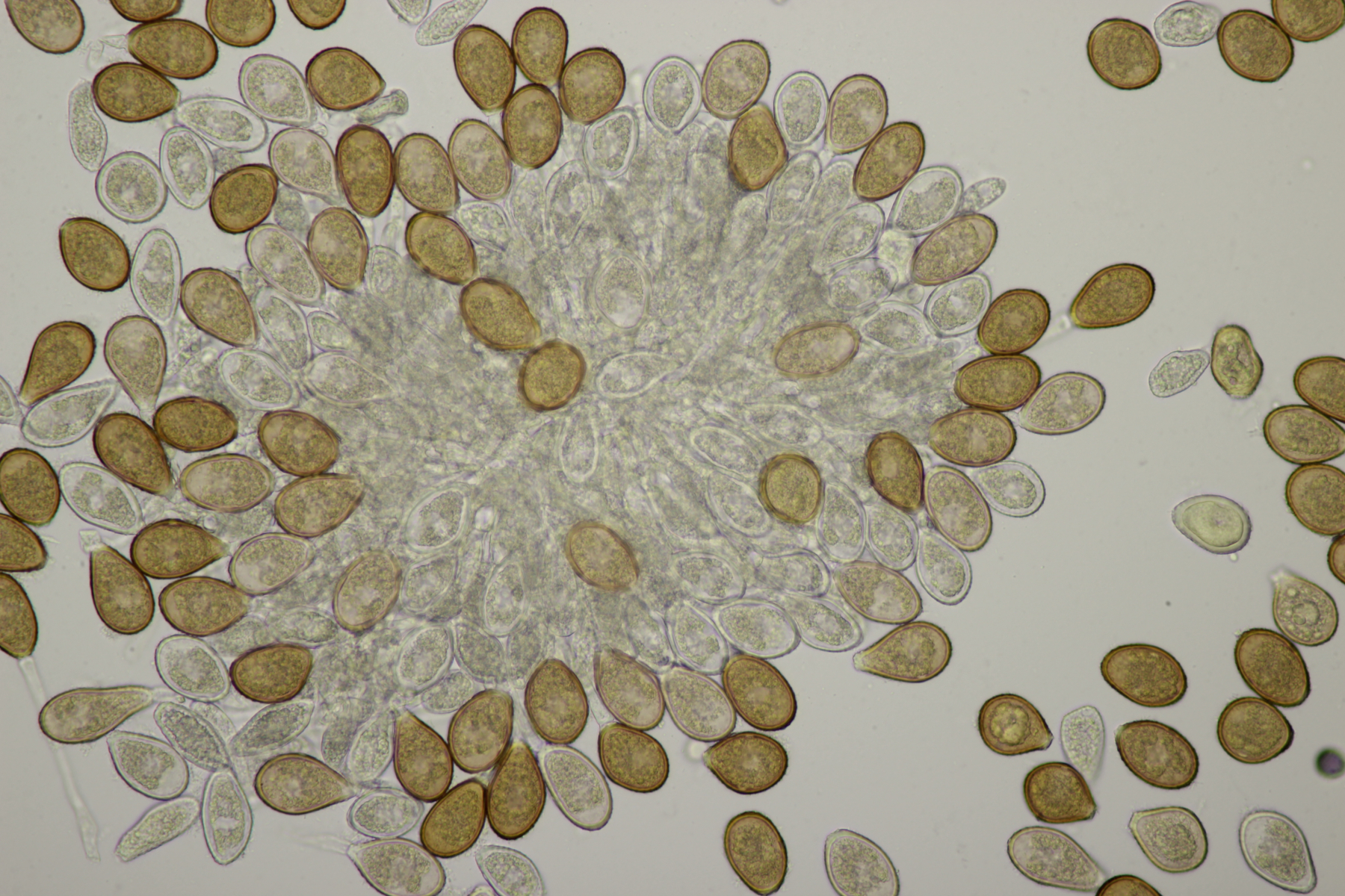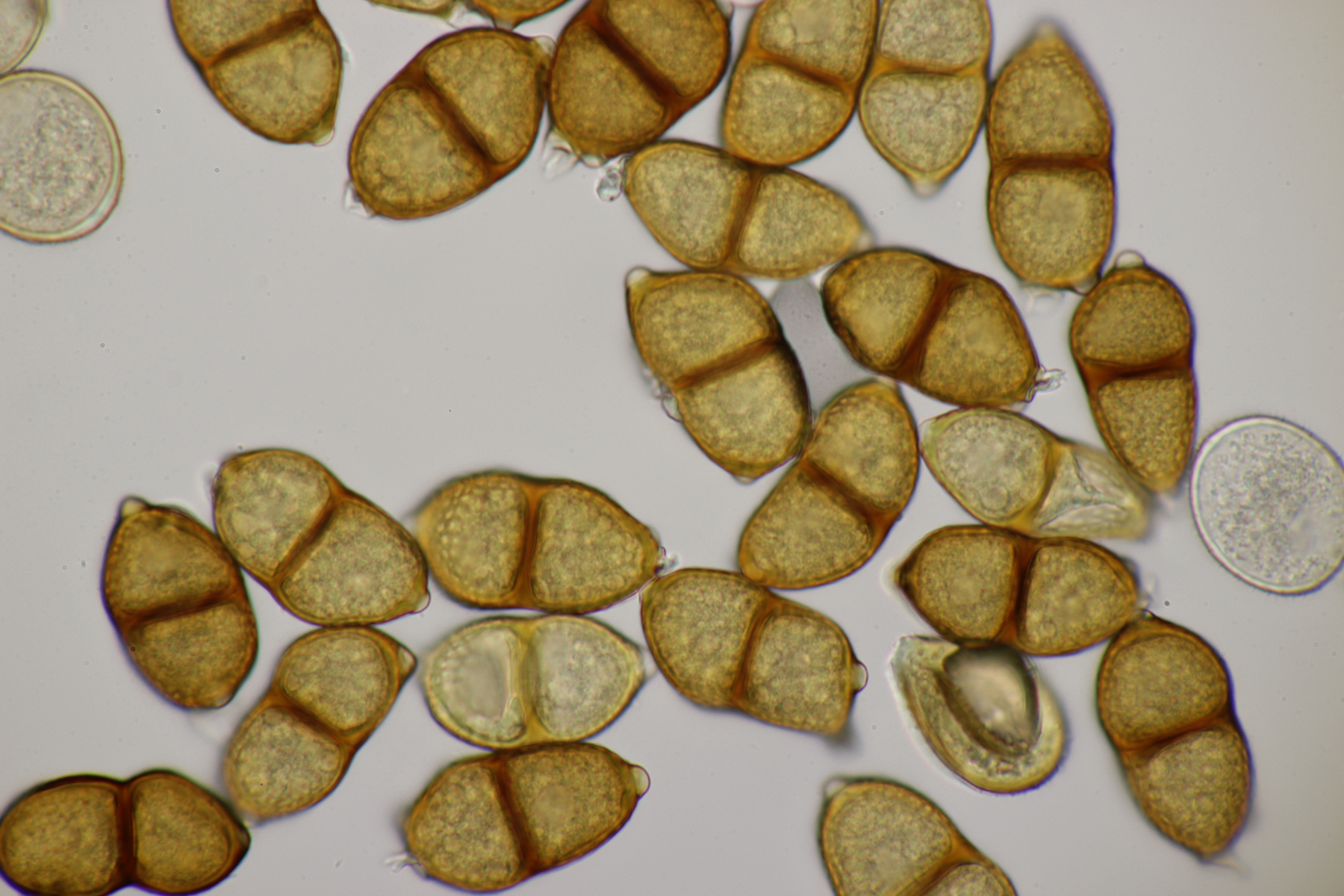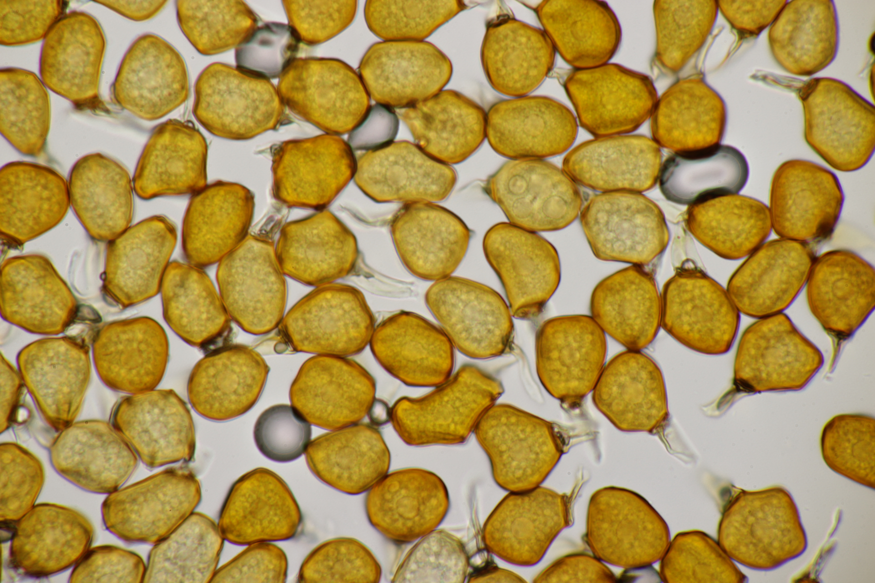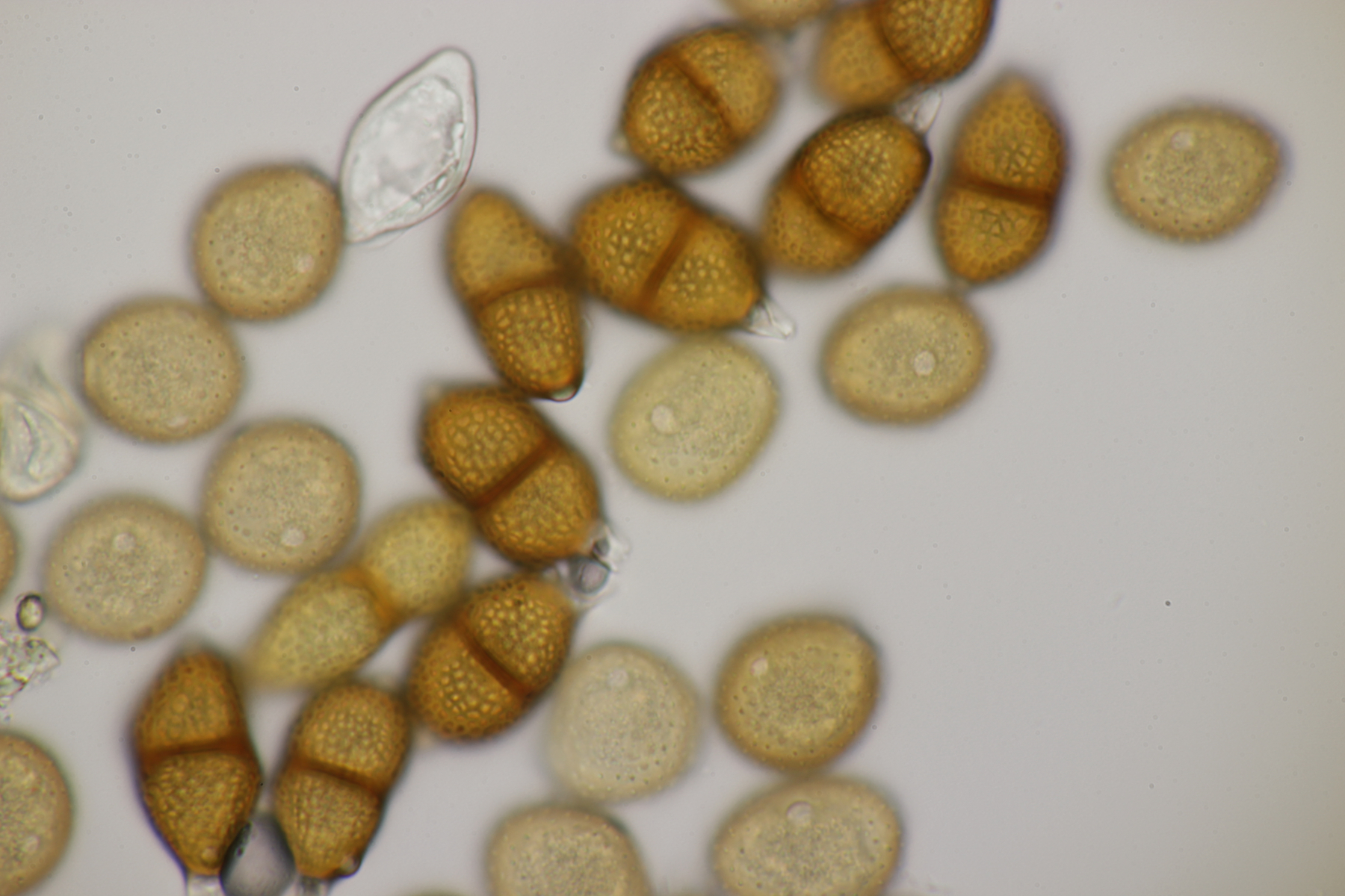 2. Uromyces muscari ex Muscari armeniacum. Den habe ich gestern in meinem Briefkasten gefunden. Vor ein paar Tagen hatte jemand bei inaturalist diesen Rost als Beobachtung hochgeladen. Da der Finderun kein Mikroskop zur Verfügung steht, konnten mögliche Verwechslungspartner nicht sicher ausgeschlossen werden und so habe ich dann um einen Beleg gebeten.