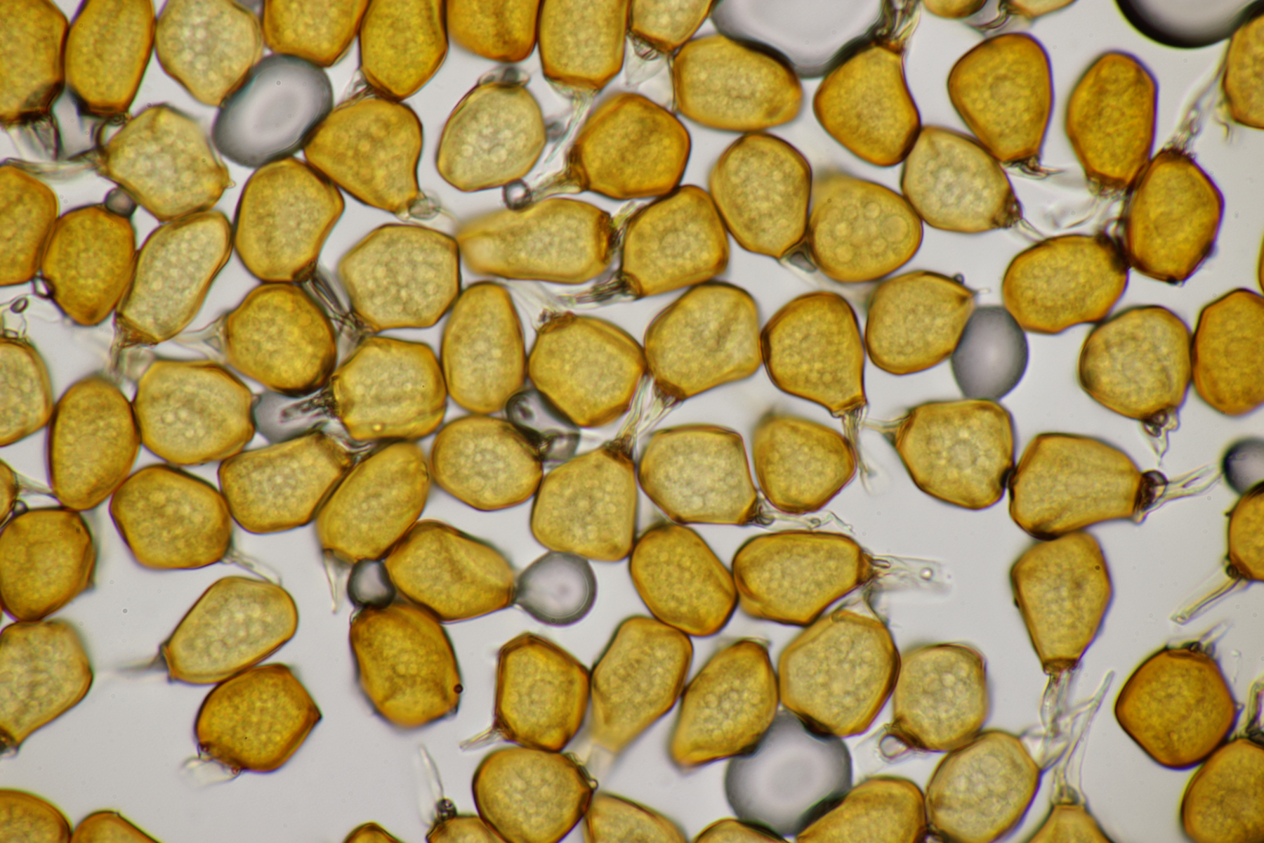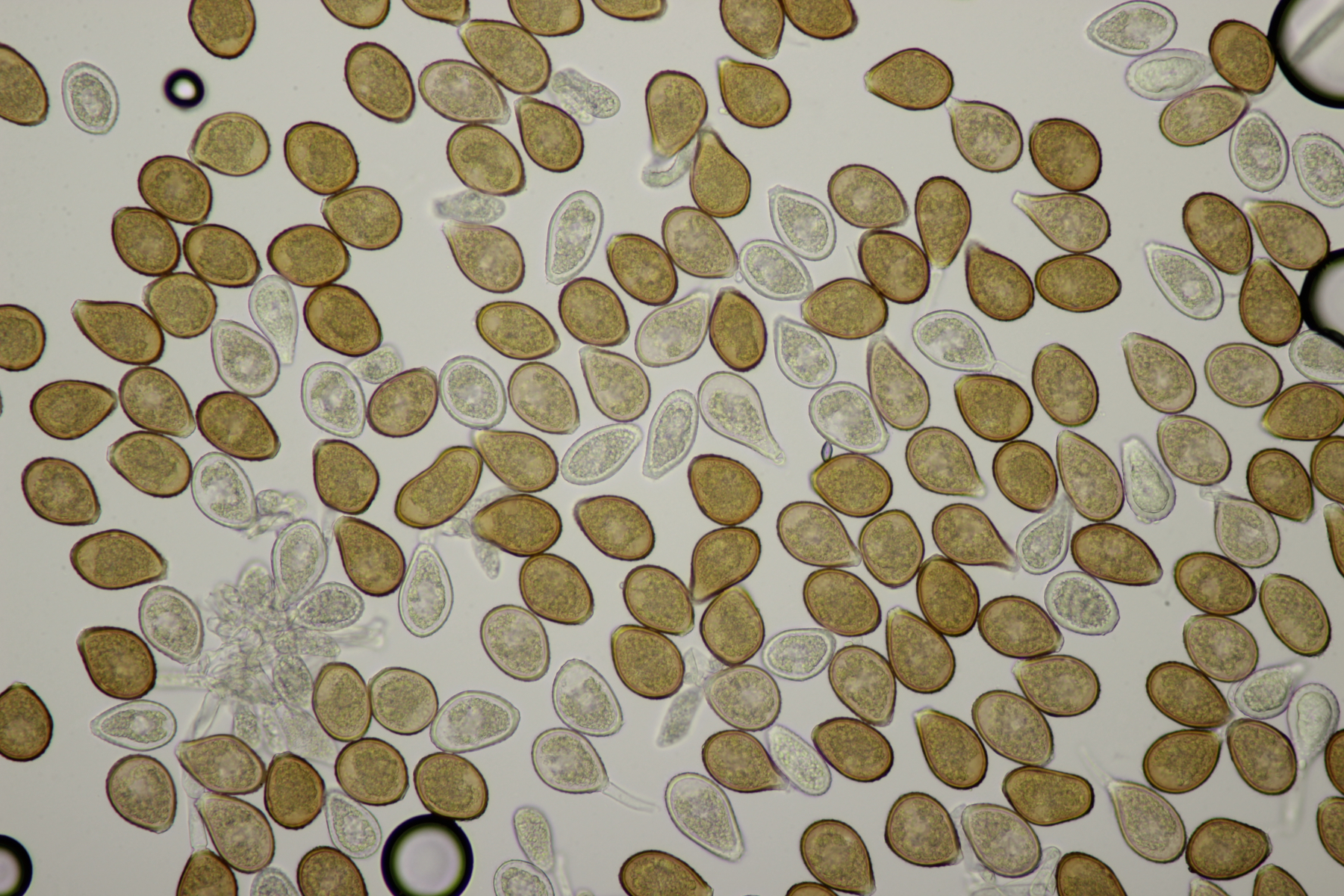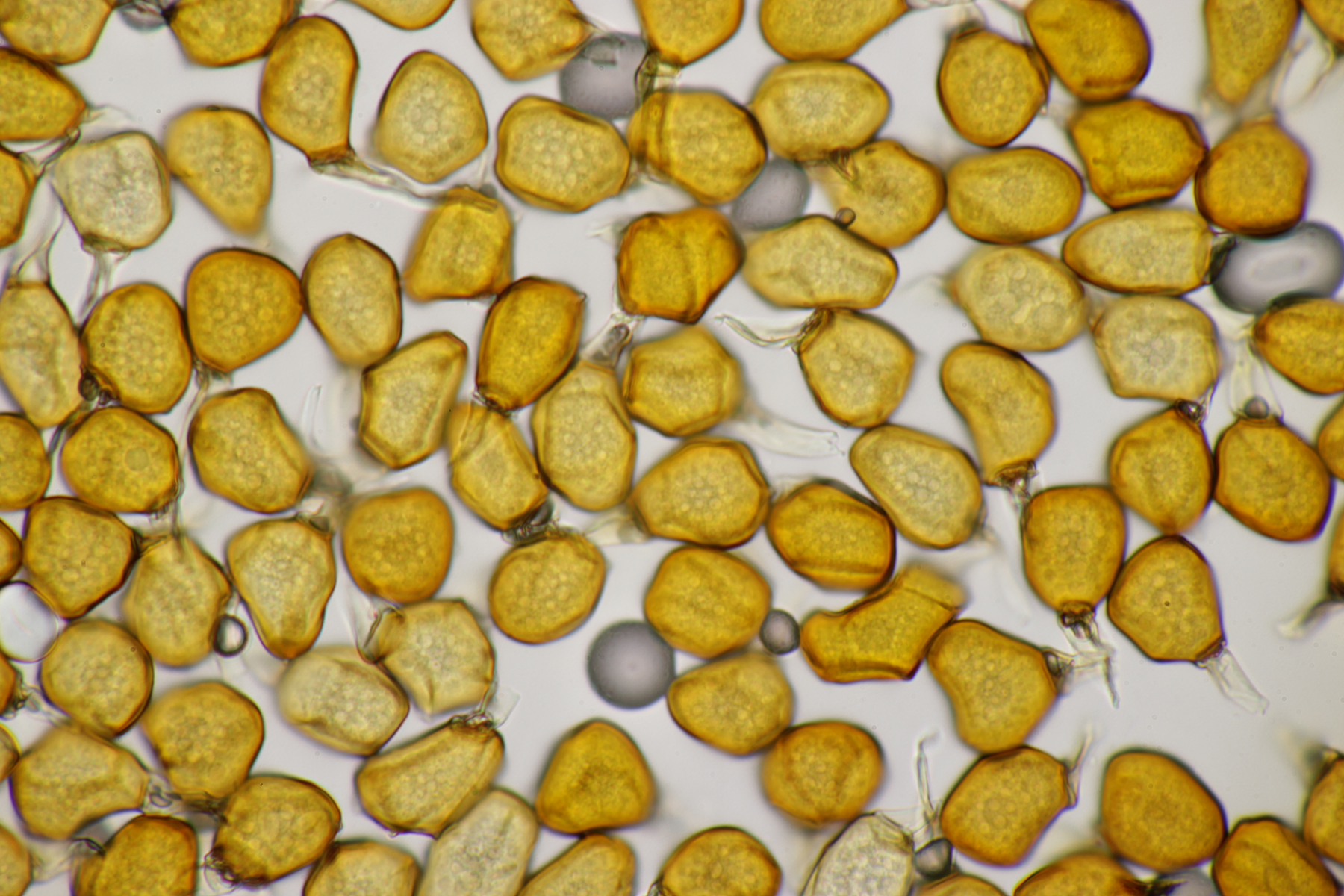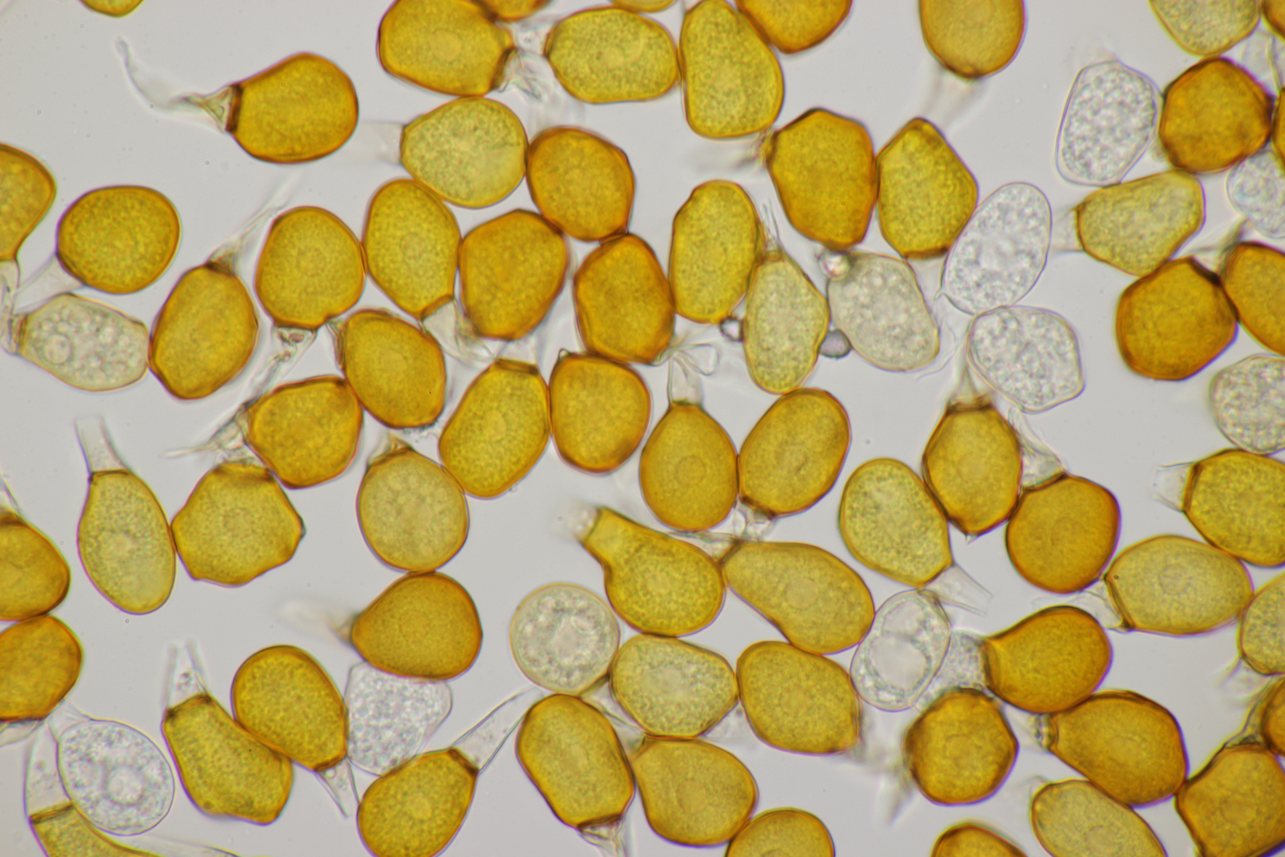 2. Uromyces muscari ex Muscari armeniacum. Den habe ich gestern in meinem Briefkasten gefunden. Vor ein paar Tagen hatte jemand bei inaturalist diesen Rost als Beobachtung hochgeladen. Da der Finderun kein Mikroskop zur Verfügung steht, konnten mögliche Verwechslungspartner nicht sicher ausgeschlossen werden und so habe ich dann um einen Beleg gebeten.