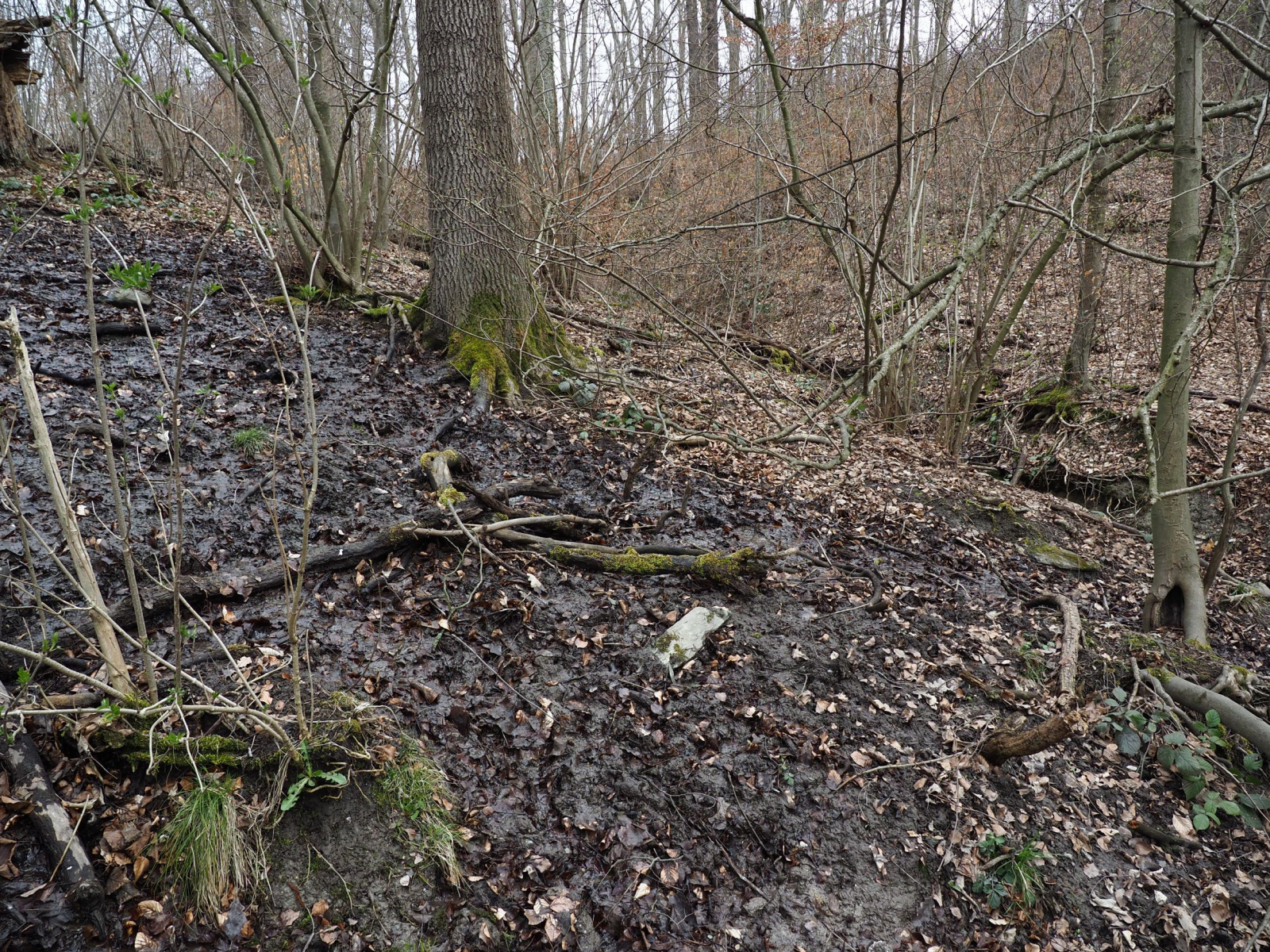 Den Einstieg nahmen wir am Rand eines Seitentals, wo sich ein interessanter, naturbelassener Laubwald mit einem ausgeprägten Quellbereich finden ließ. Den Bach am Talgrund werde ich demnächst nach Feuersalamandern absuchen