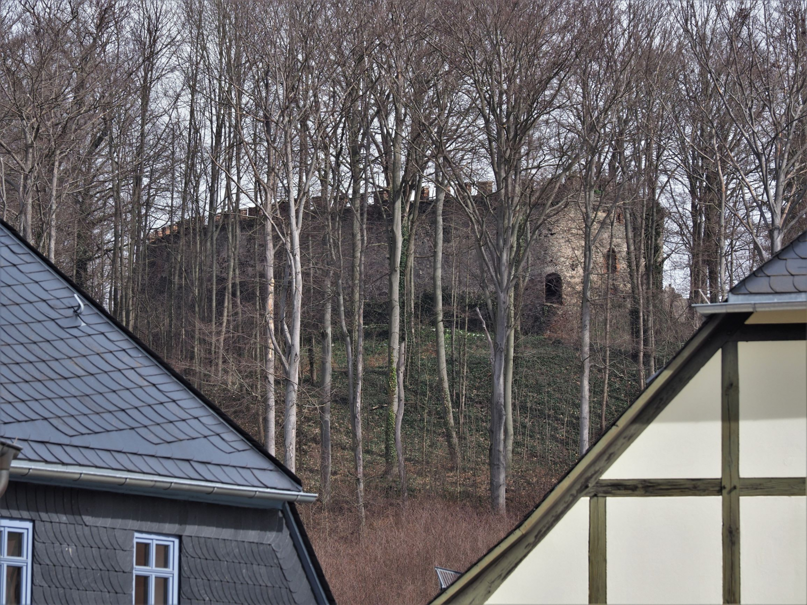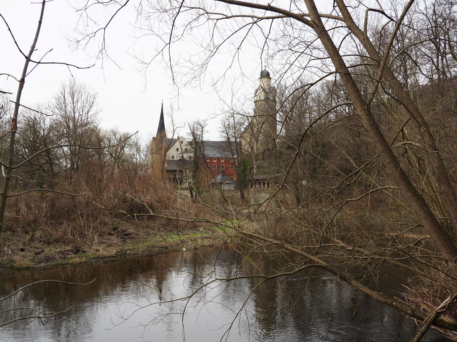 • Nach den kalten, schneereichen Tagen scharf auf frische, mildere Luft und mit Hoffnung auf Pilzfunde suchten wir die o.g. Gegend auf. Abgesehen von einigen der üblichen Problemecken der menschlichen Zivilisation ist es dort landschaftlich reizvoll und geologisch sowie historisch interessant. Am Fluss gibt es die gut erhaltene Burg Stein, die sich wieder im Besitz des Grafen Schönburg-Hartenstein befindet und am Ostrand der Stad die Schlossruine Hartenstein, welche seit Jahren Stück für Stück von einem Verein wieder instand gesetzt wird.1945 war sie durch einen amerikanischen Bombenangriff fast komplett zerstört worden.