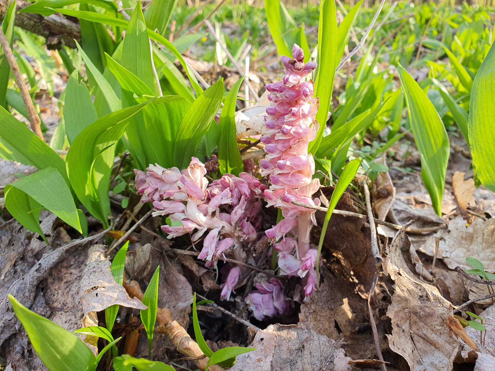 Jedes Jahr um diese Zeit kann man dort auch die Gewöhnliche Schuppenwurz (Lathraea squamaria) bewundern, in diesem Fall möglicherweise auf Weide parasitierend: