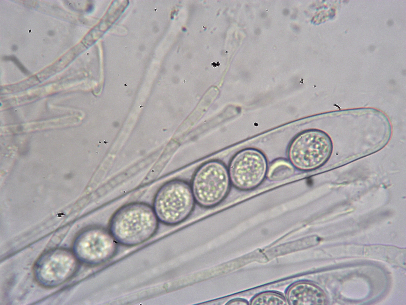 Paraphysen zwischen den Asci sind spärlich septiert, unverzweigt, mit kopfigem Ende.