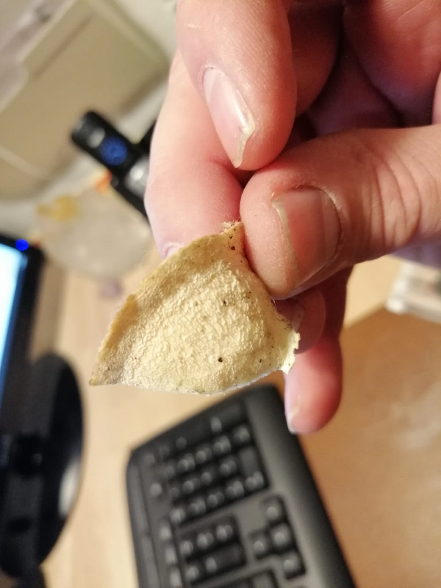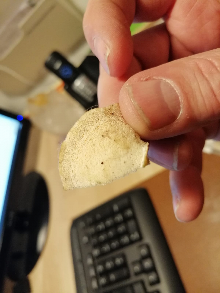 Also, auf der Unterseite sind feine Pooren zu sehen. Bilder sind Mist, ich weiß. Aber vielleicht hilft es ja dennoch zur Bestimmung.