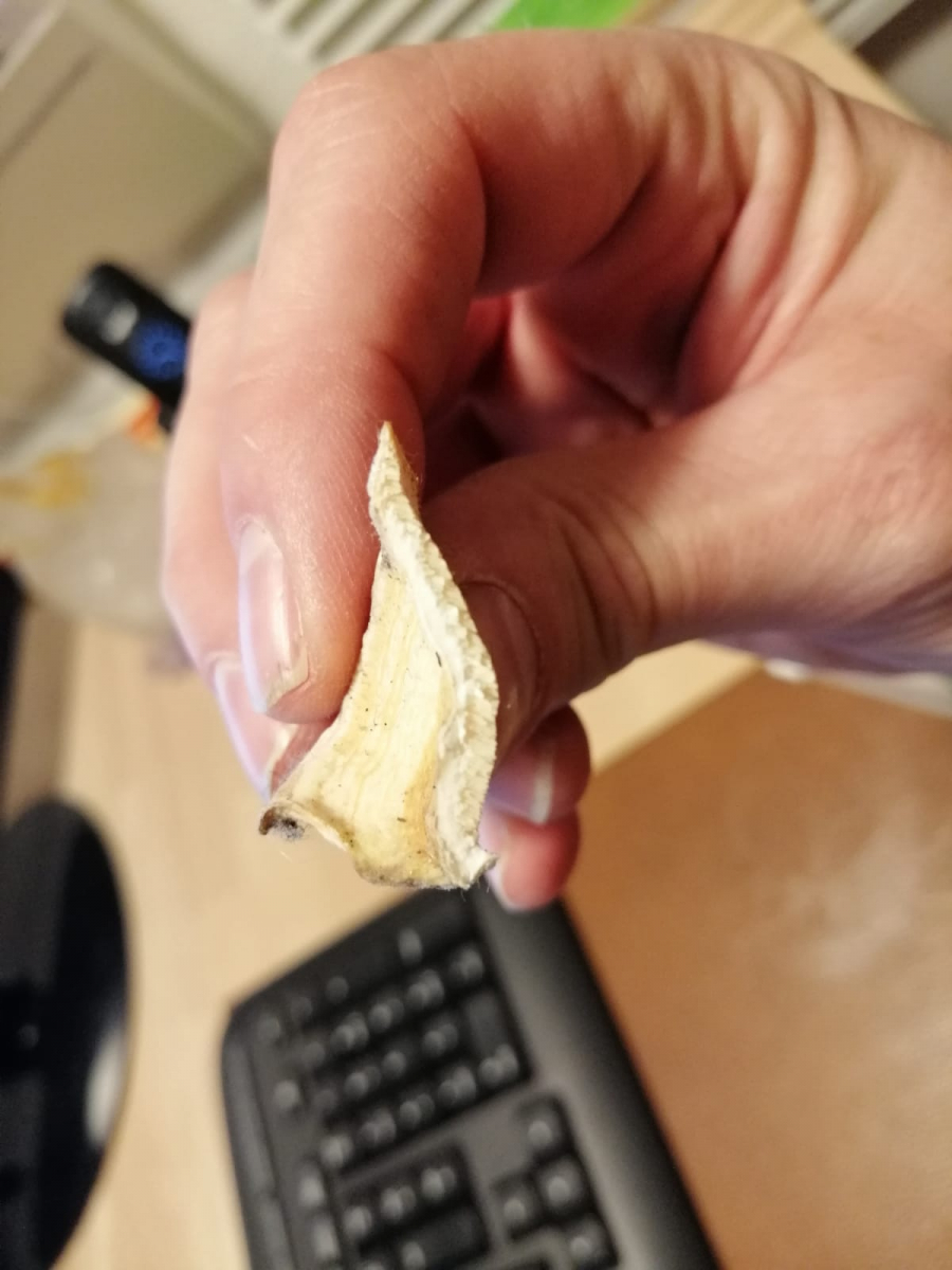 Also, auf der Unterseite sind feine Pooren zu sehen. Bilder sind Mist, ich weiß. Aber vielleicht hilft es ja dennoch zur Bestimmung.