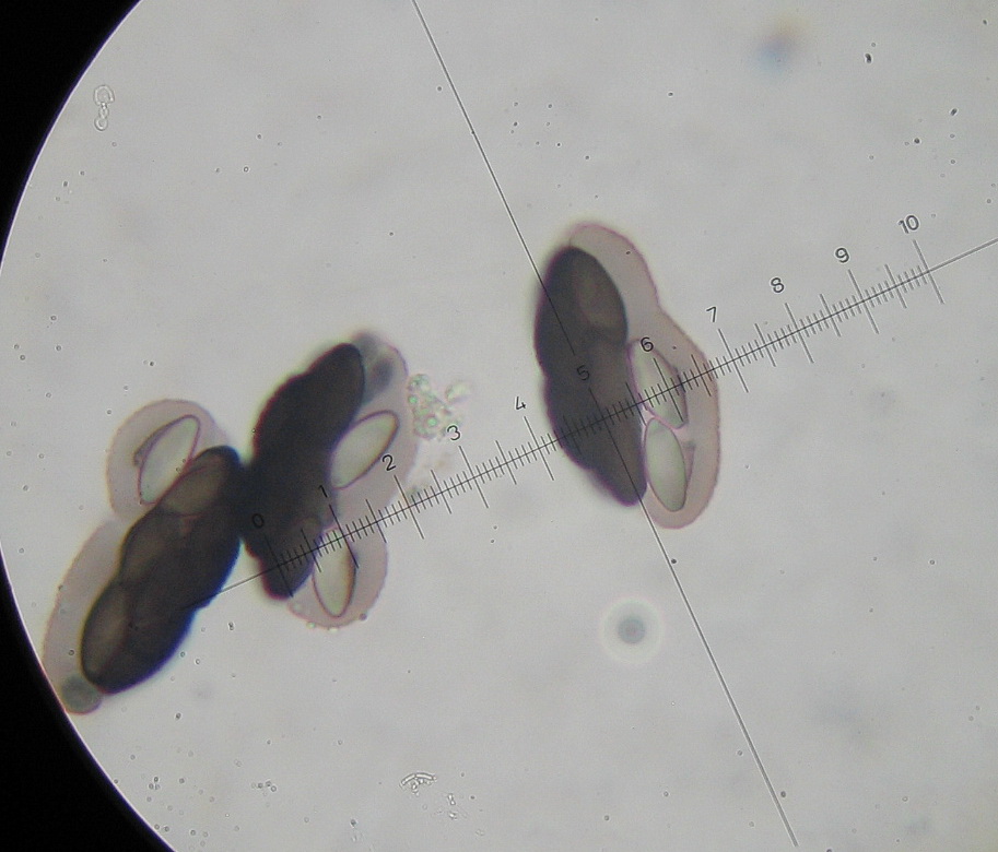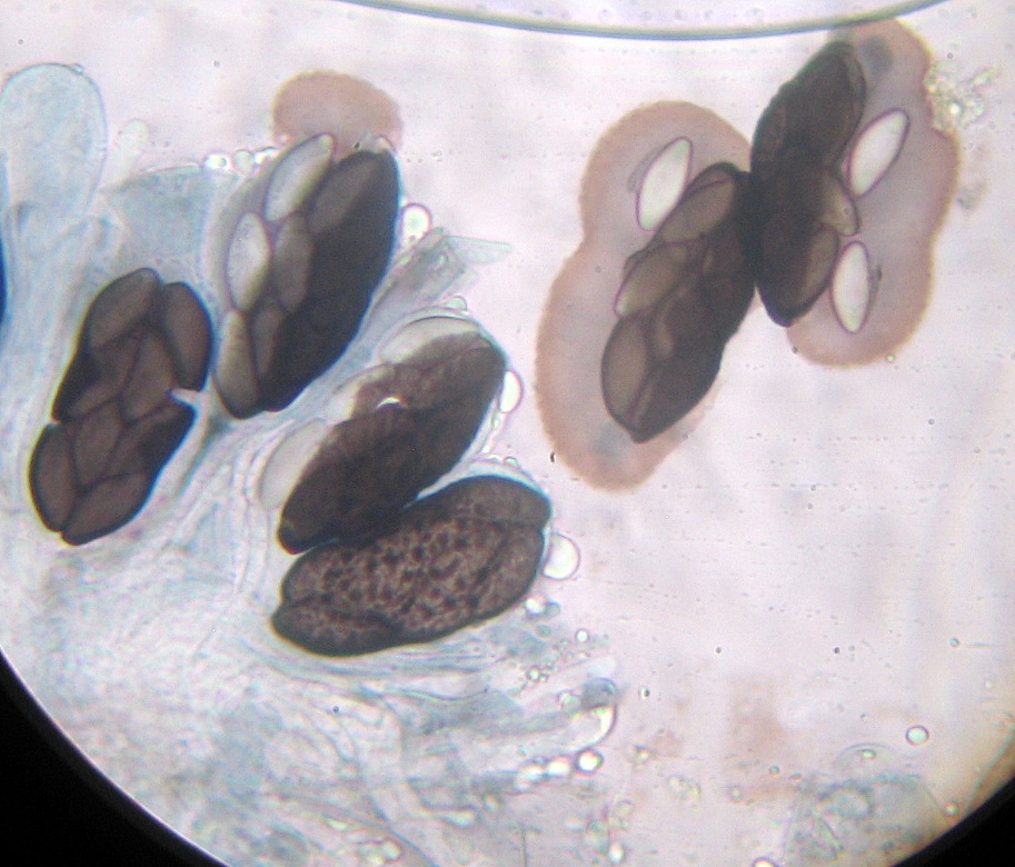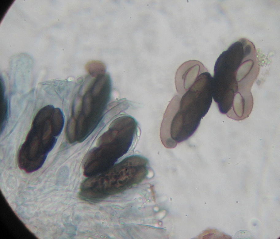Sporen 14 x 6µ, spindelig, warzig-fleckig,