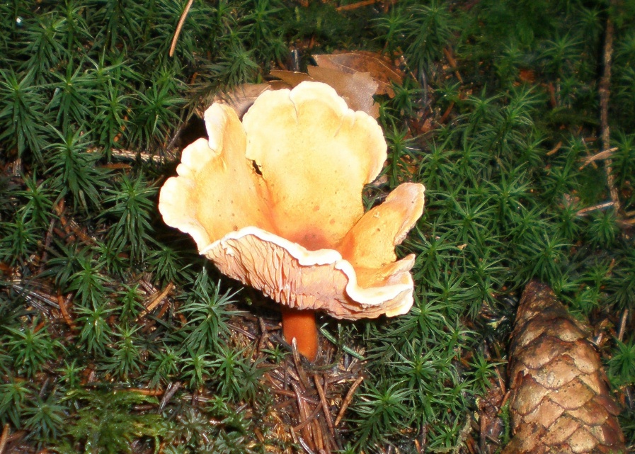 Bei Pilz Nr.3 würde ich vom Falschen Pfifferling ausgehen, ist zwar durchs Anblitzen farblich etwas verfälscht, aber die farbigen Lamellen sind noch gut nachvollziehbar (womit Rüblinge wegfallen sollten).