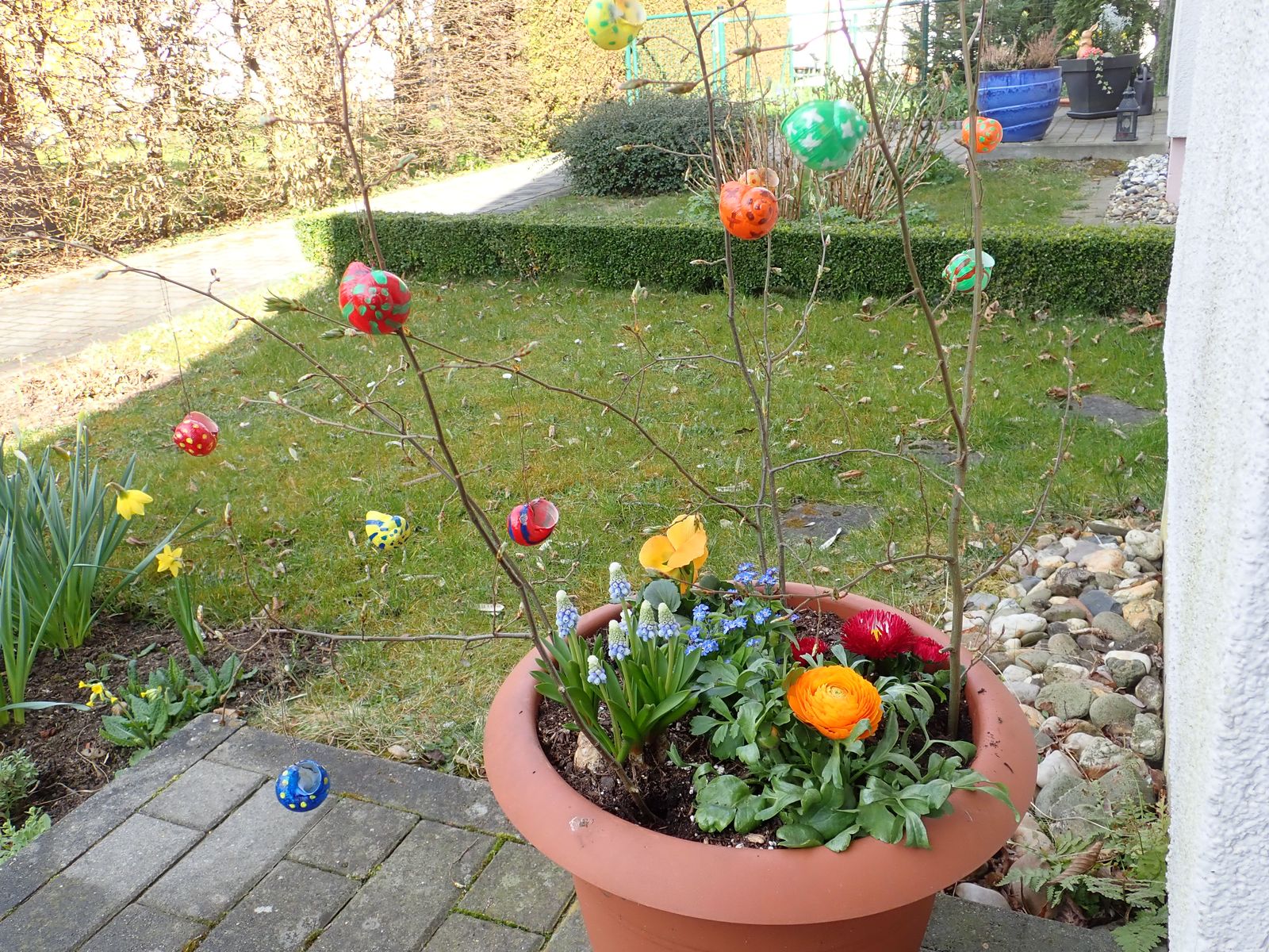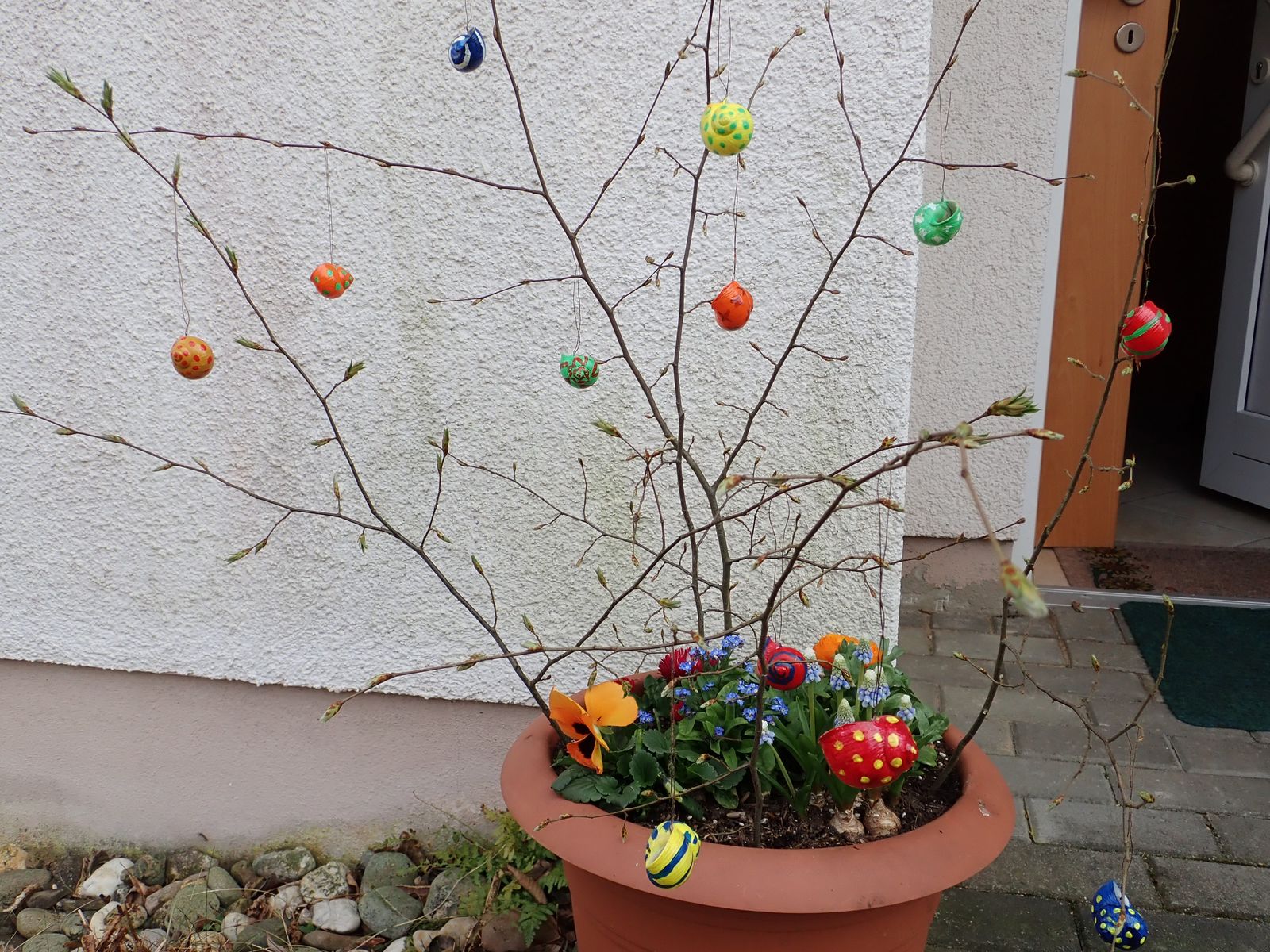 Hab heute Hainbuchenzweige von unserer Tour mitgebracht und mit ihnen meinen Frühlingspflanztopf vor der Tür verziert.