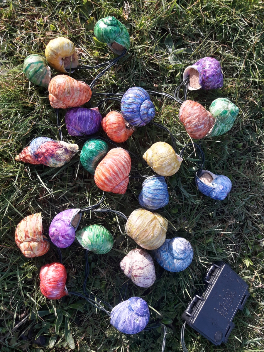 Ostern rückt näher und ich habe nun meine ersten Malversuche an den Schneckenhäusern unternommen.