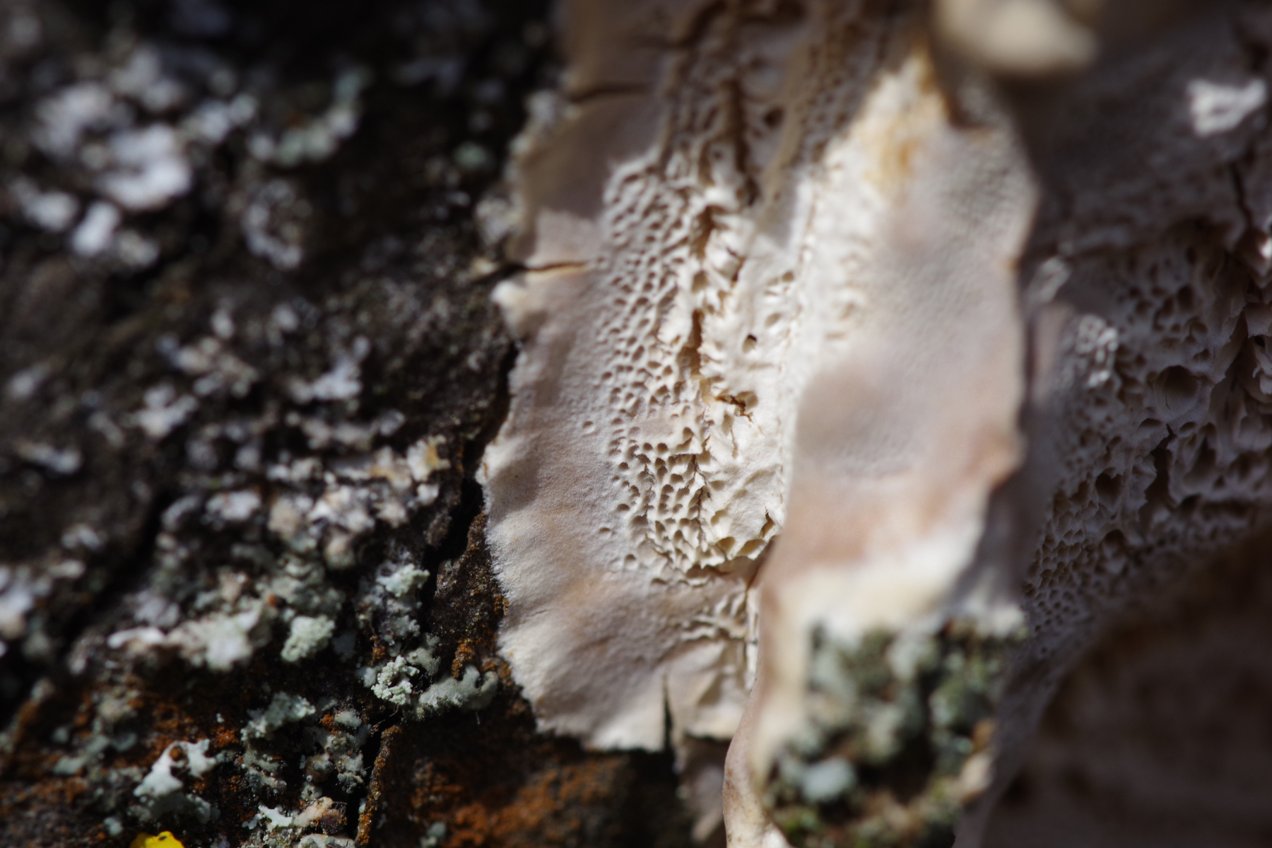 Pilz 1) sieht mysteriös aus. Wirkt aber auch einigermaßen eingetrocknet irgendwie. Die unregelmäßigen Poren und die Hütchen sind aber bemerkenswert. Vielleicht ein Oxyporus, aber so richtig will es da bei mir nicht klick machen gerade...