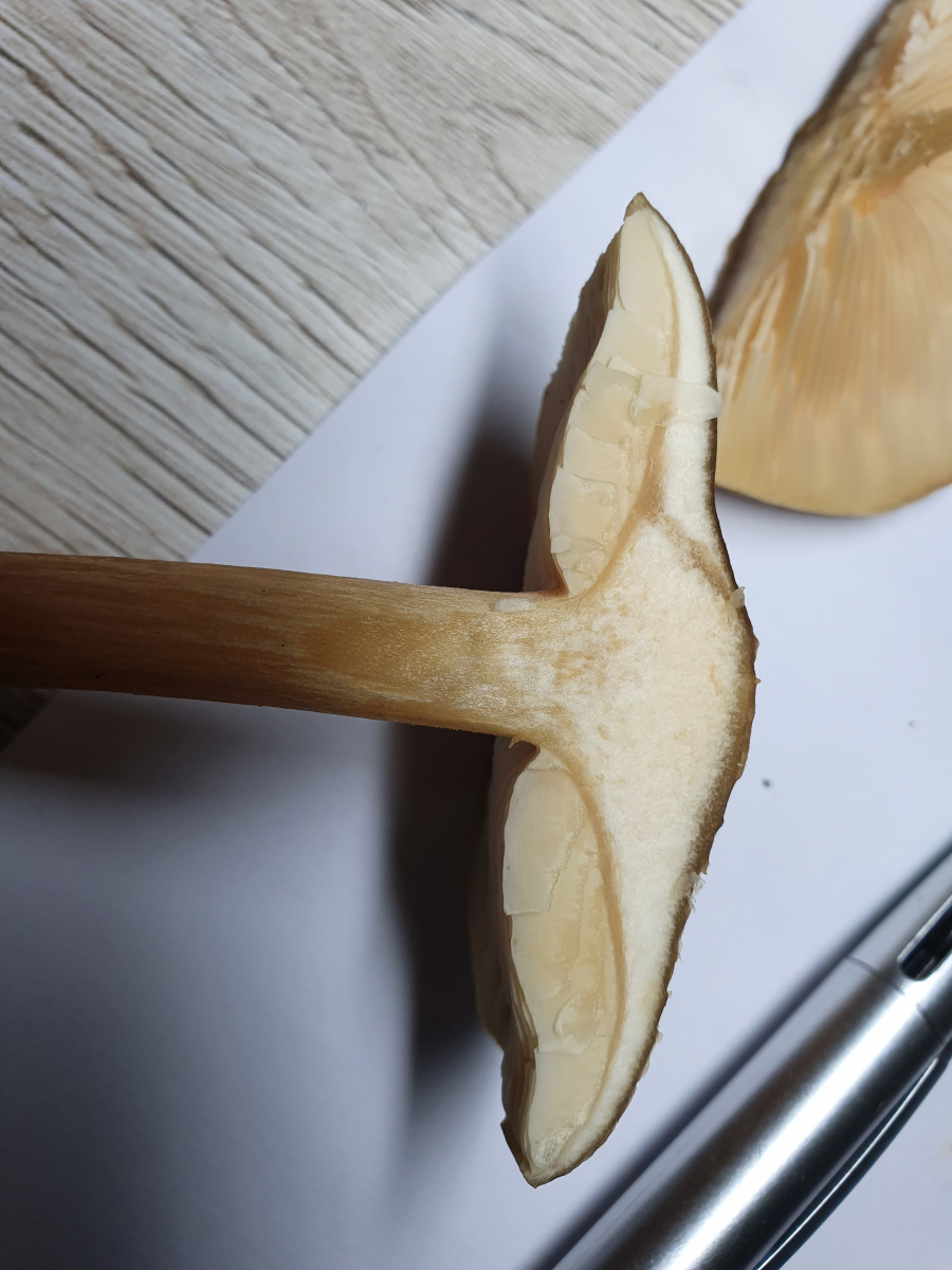 • Hi Sebastian Danke auch nochmal für dein Portrait, so konnte ich den alten handtellergroßen Schlappen, den ich gestern auf einem alten Holzlagerplatz fand doch noch benennen, was ich mich sonst bei einem Weichritterling nicht getraut hätte. Lamellen mit einem Hauch Aprikose, Geruch angenehm. LG Ogni
