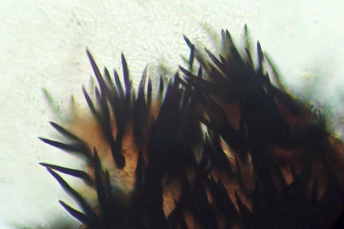 Die Gattund Lasiobolus kann man in der Regel bereits makroskopisch ansprechen. Die Artbestimmung ist allerdings auch hier nicht immer einfach, wie in diesem Fall. In teilweise überreifen Apothecien betrugen die Sporenmaße 21-27 x 11-14 µm, für die Art scheinbar zu groß. Die relativ kurzen und breiten Haare von 200-400 x 20-45 µm ließen jedoch keine andere Deutung zu.