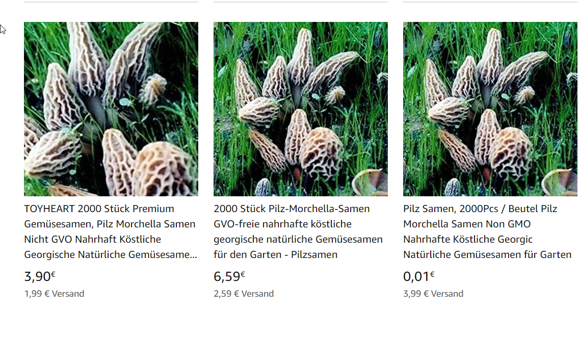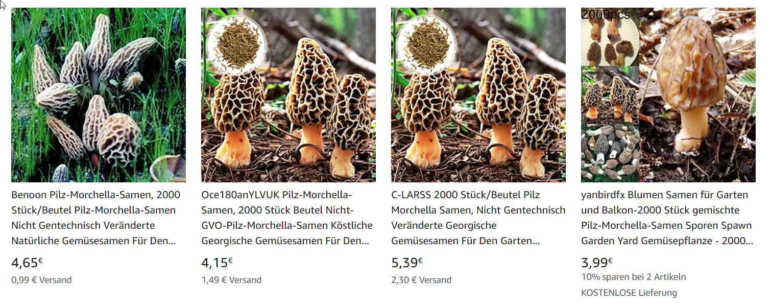 Falls das jemand liest und nicht kapieren sollte: Klar ist das Betrug. Und zwar beide verlinkten Angebote. Morchelsamen sind genauso echt wie der Weihnachtsmann, also eine reine Erfindung. Naja, wer auf diesen Betrug reinfällt, wird immerhin nicht arm bei den Preisen.