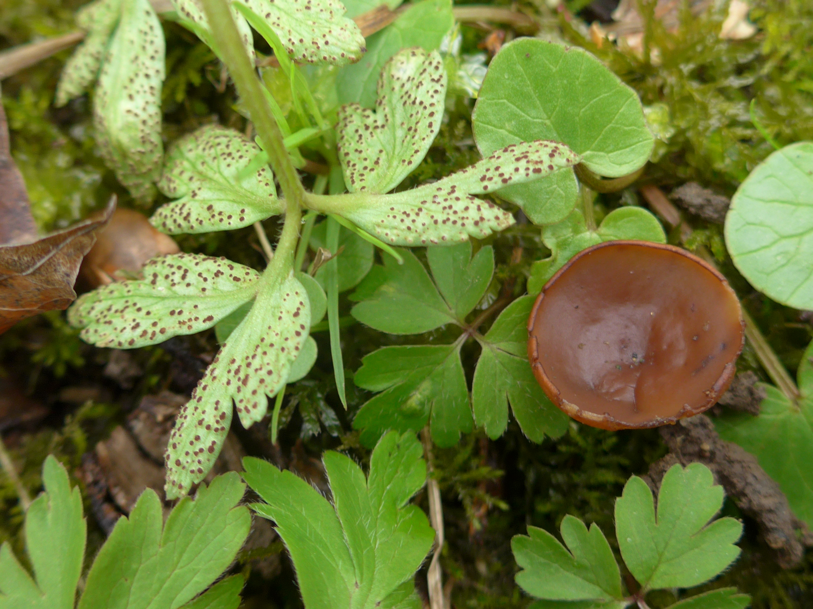 Gestern hat Corne Sklerotienbecherlinge bei Scharbockskraut gefunden. Natürlich haben wir uns zeitnah getroffen für eine Fotosession. Die Mikrountersuchung brachte dann konstant zweikernige Sporen, so dass hier der recht seltene Scharbockskrautsklerotienbecherling - Sclerotinia binucleata gesichert nachgewiesen ist.