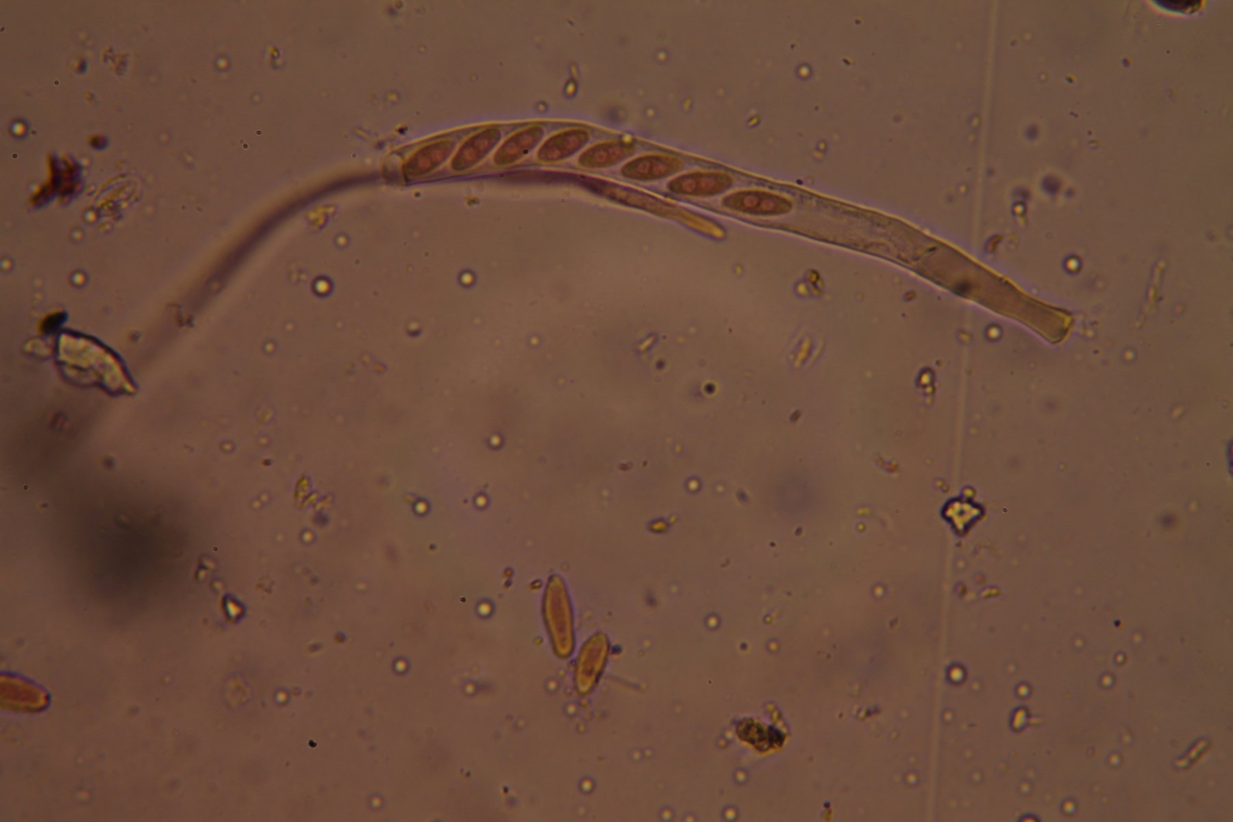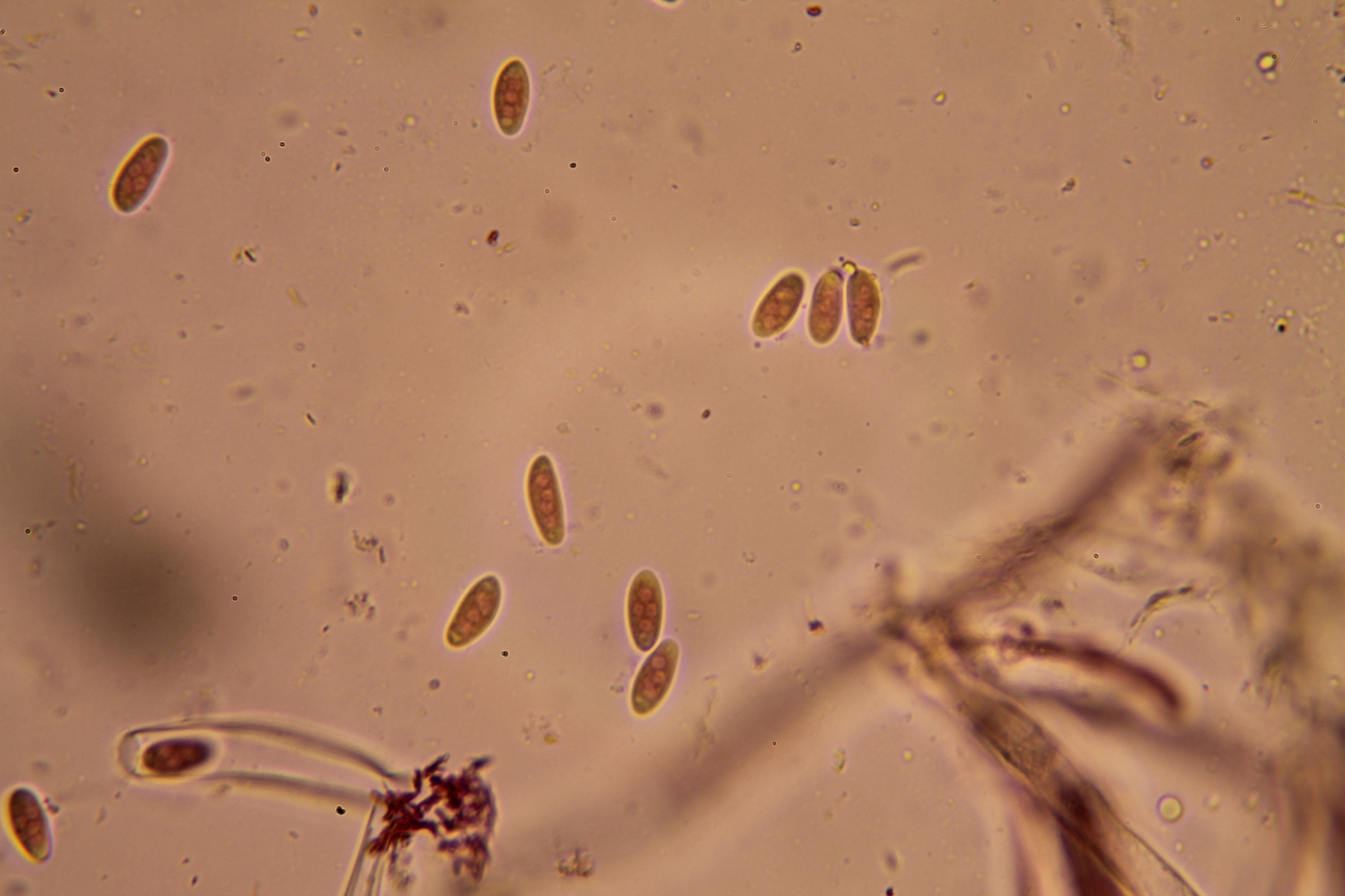Nicht weit davon entfernt standen sehr viele Anemonenbecherlinge - Dumontinia tuberosa; mit vierkernigen Sporen. Ein Mal sogar als "Kleeblatt".