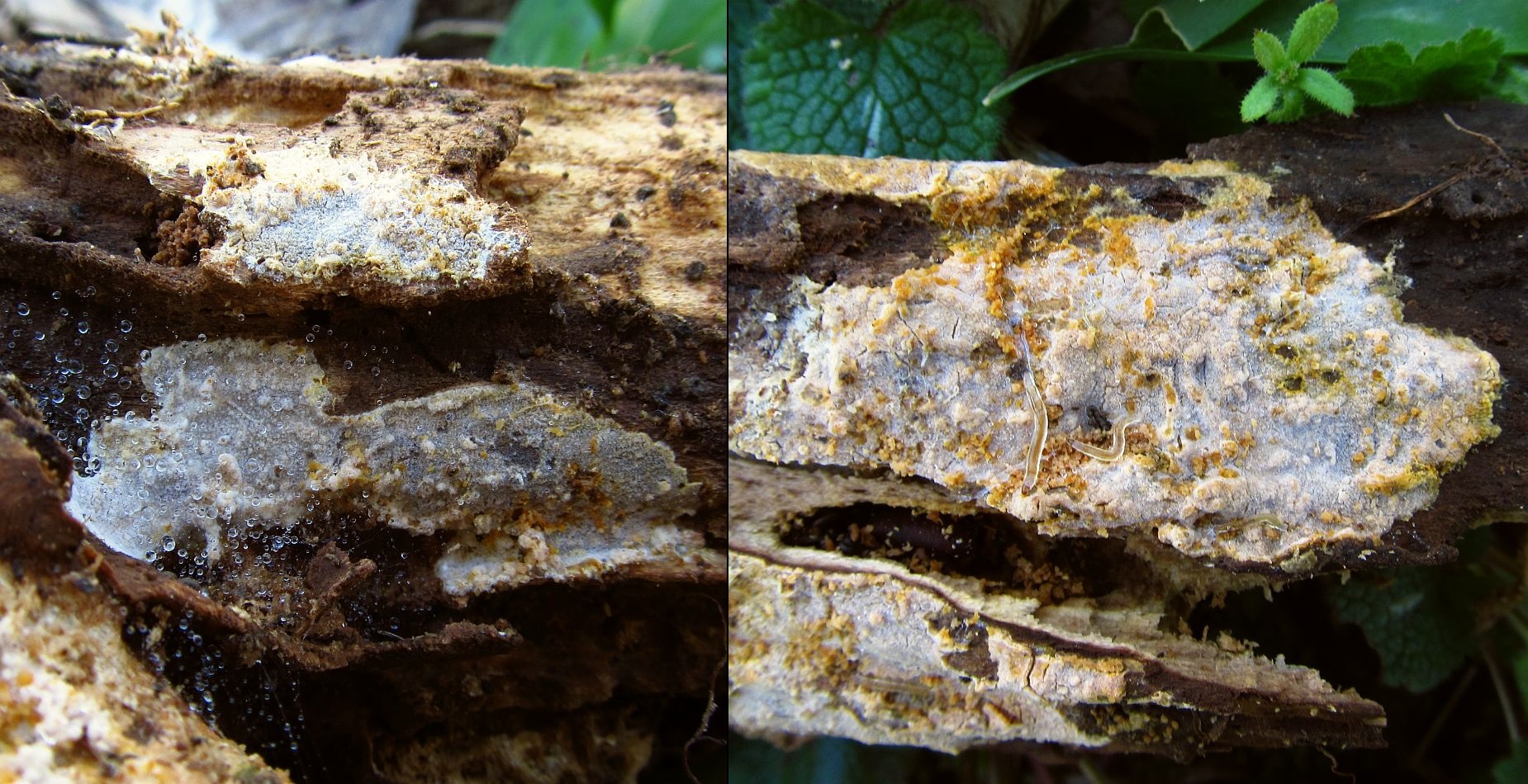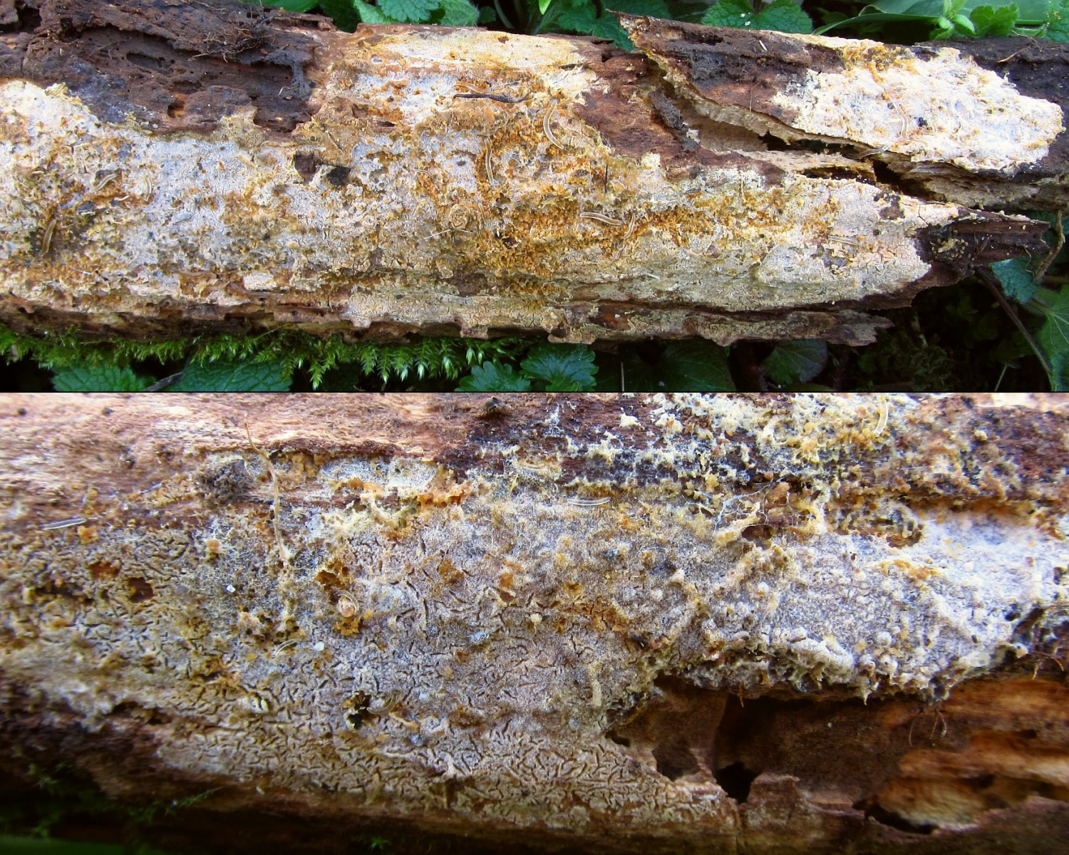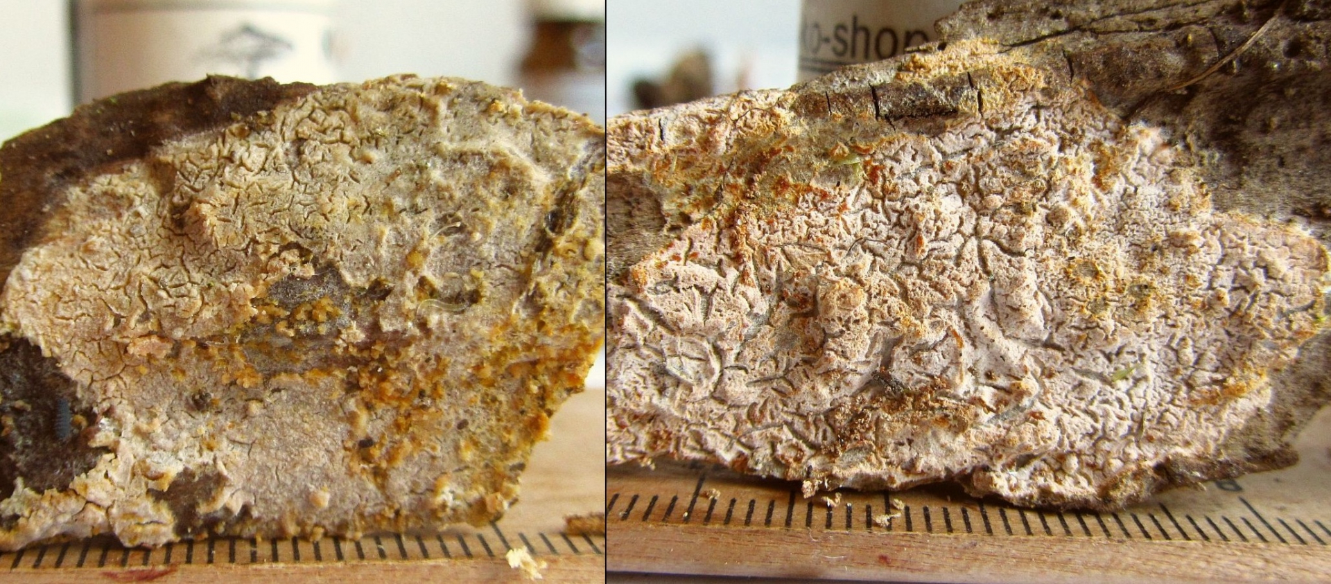 Phlebiopsis roumeguerei wäre allerdings jetzt nicht gerade ein alltäglicher Fund, darum hier Nachfrage: Könnte passen, oder habe ich was übersehen?