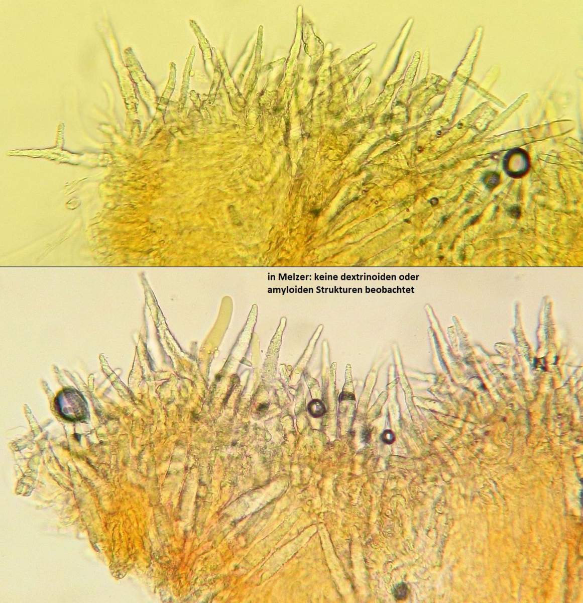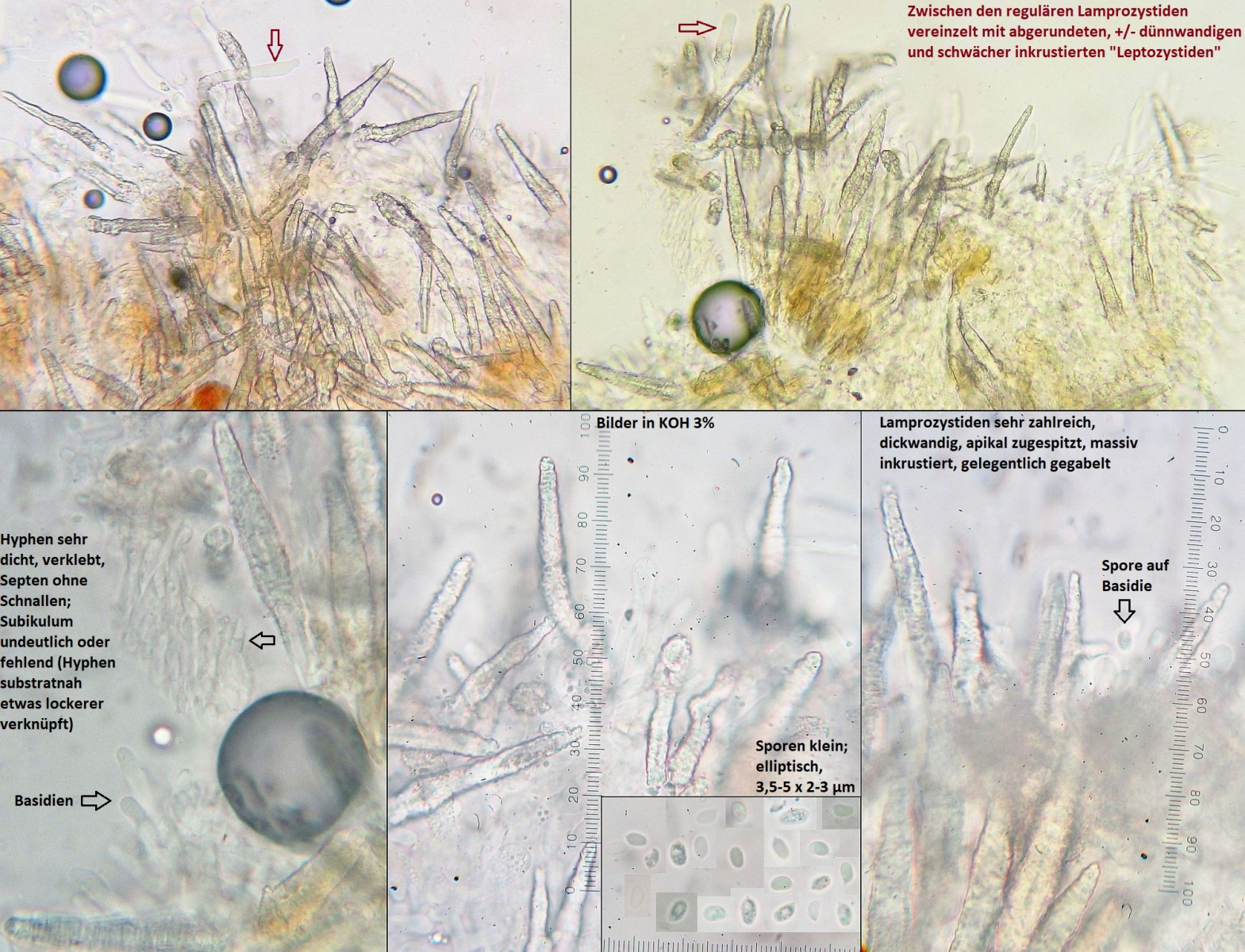Lamprozystiden dickwandig, zugespitzt, auf ganzer Länge stark inkrustiert, gelegentlich verzweigt, recht schlank