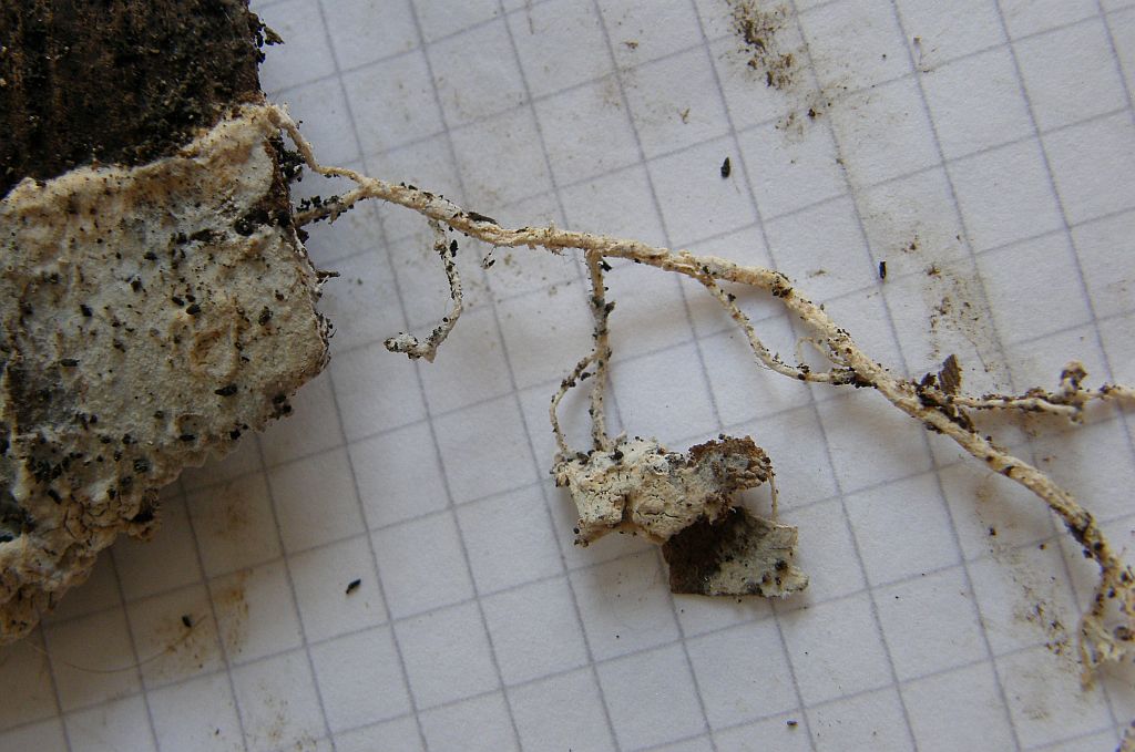 Mikroskopisch: Monomitisch, Hyphen sehr dicht, ineinander verklebt, substratnah etwas lockerer aber ohne differnziertes Subikulum (Hyphen in allen Bereichen +/- aufsteigend); alle Septen ohne Schnallen