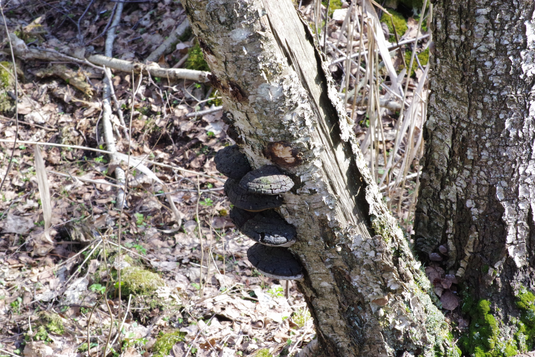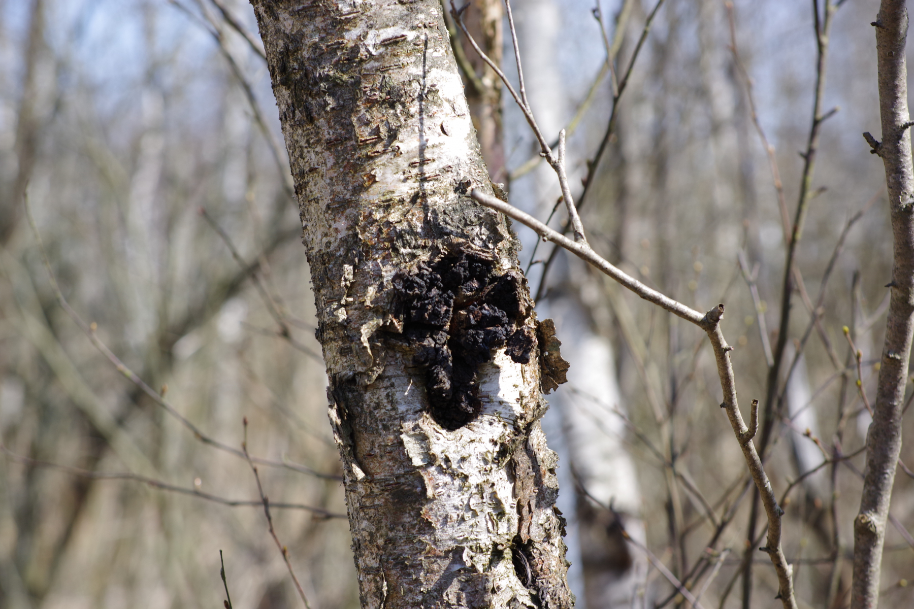 3) Ein Inonotus obliquus an einer Birke, die keine 10 cm dick ist