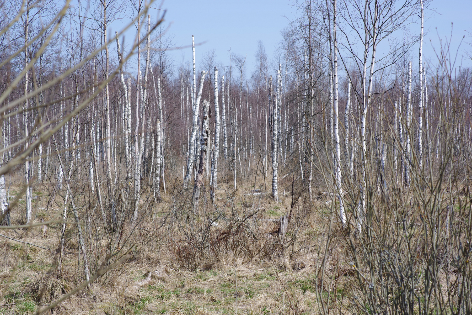 • Moin, bei sommerlichen 20°C und voller Sonne sollte das eigentlich eine längere Moorwaldtour mit meinem Jüngsten werden, aber die Biber waren fleißig und die "Wege" des letzten Jahres funktionierten nicht mehr. Normalerweise muss man ja nur stromab gehen, irgendwann kommt ein Biberdamm, normalerweise nach einer breiten, kaum zu passierenden Lichtung voller Biberkanäle (die gern mehrere Hektar groß sind). Oder ein passend gefällter Baum.