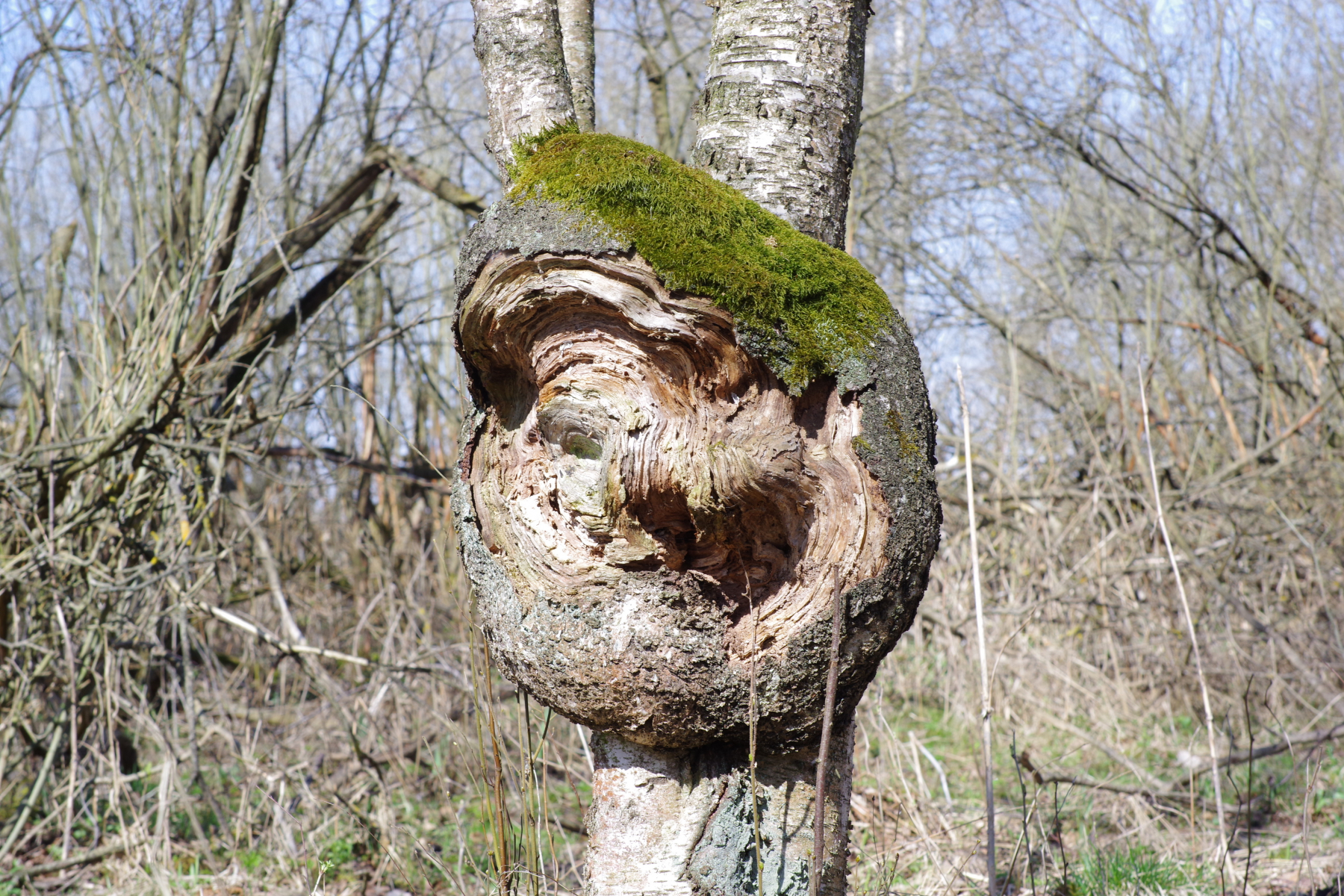 16) Eine Maser an Birke, unterseits auch mit Krusten bewachsen