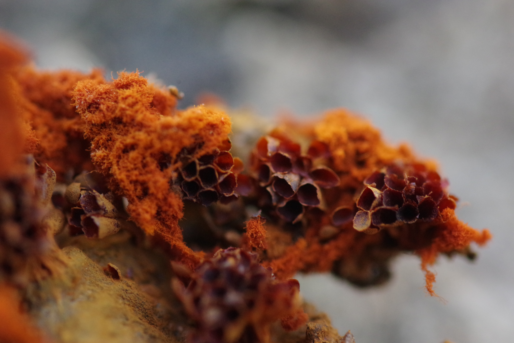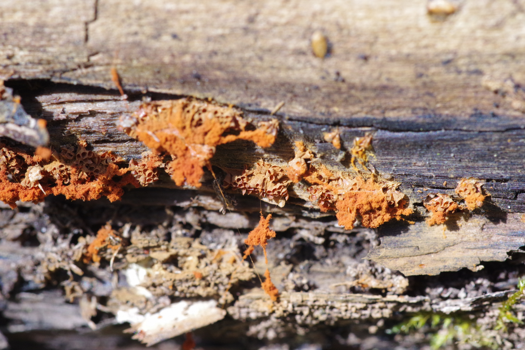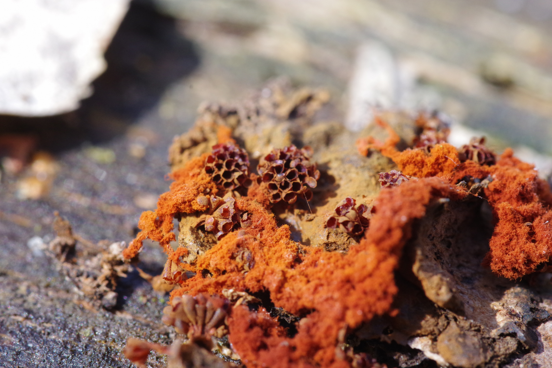 • Hallo, schöne Bilder aus einer traumhaften Natur! Der Schleimpilz sollte Metatrichia vesparum sein. Der lateinische Name, weil das Ganze irgendwie an das Nest von Feldwespen erinnert (Polistes sp.)