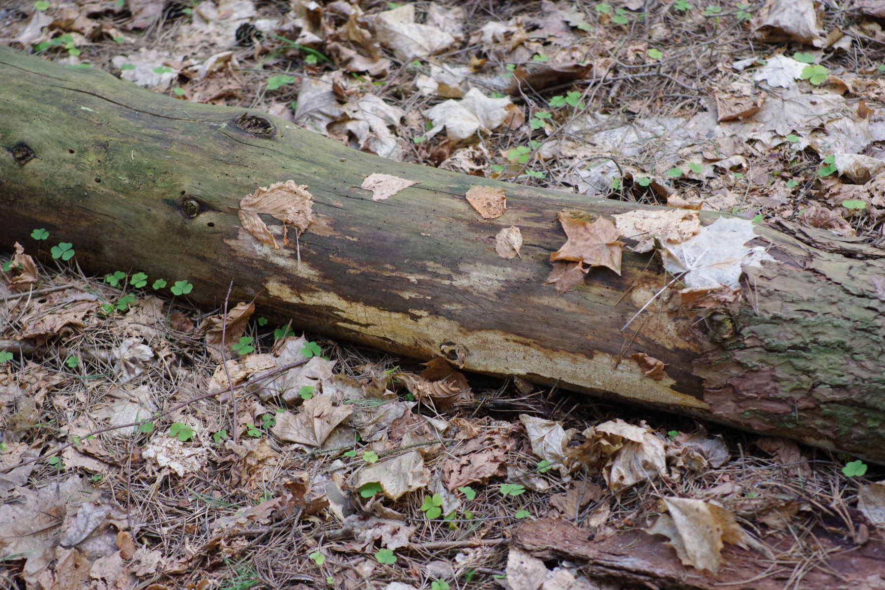 1) An einem auf dem Boden liegenden Kiefernstamm findet sich dieser Pilz, darauf etwas, was ein Schleimi (1a) sein könnte,