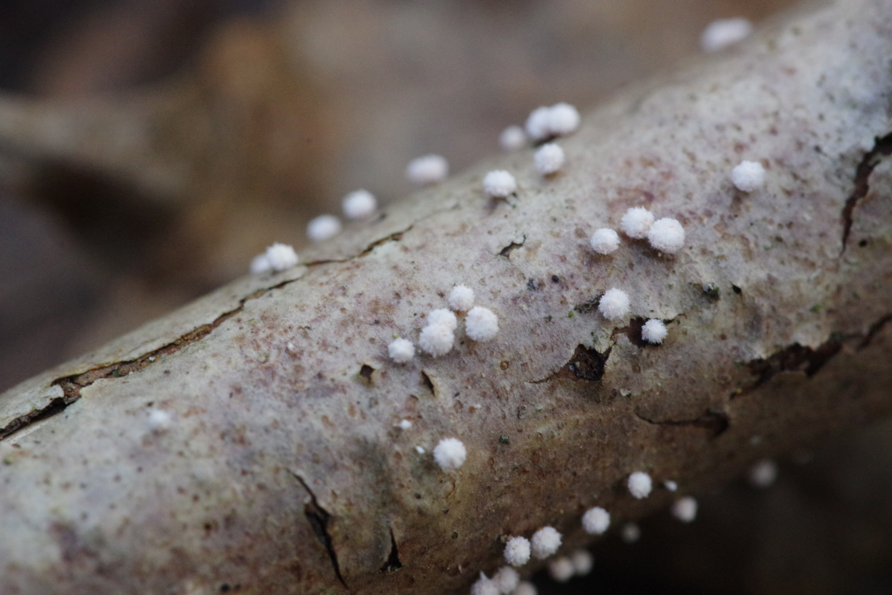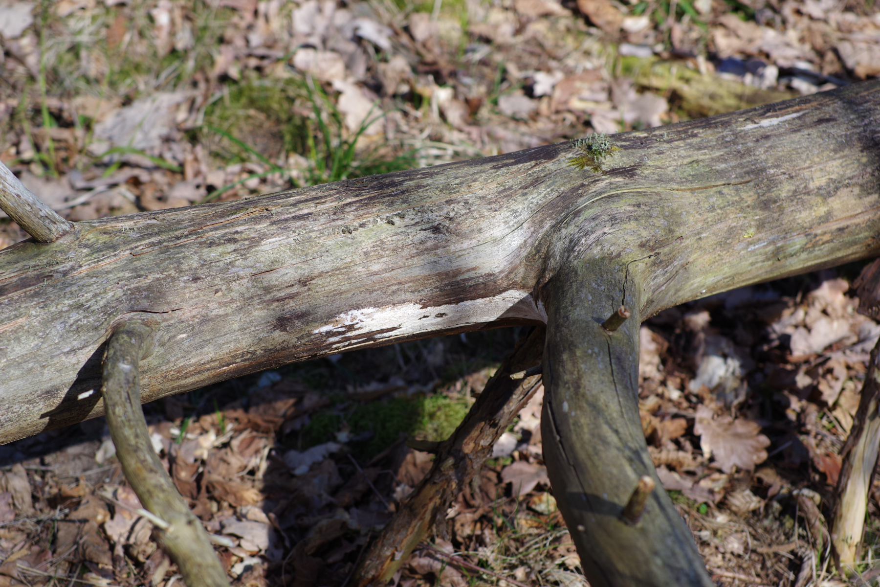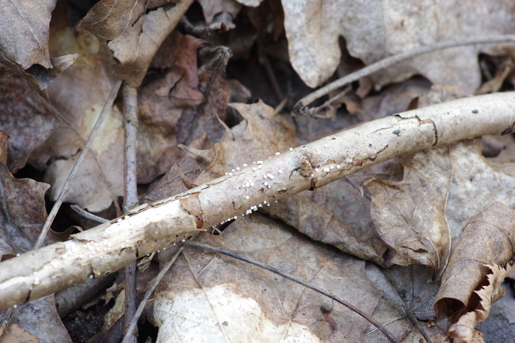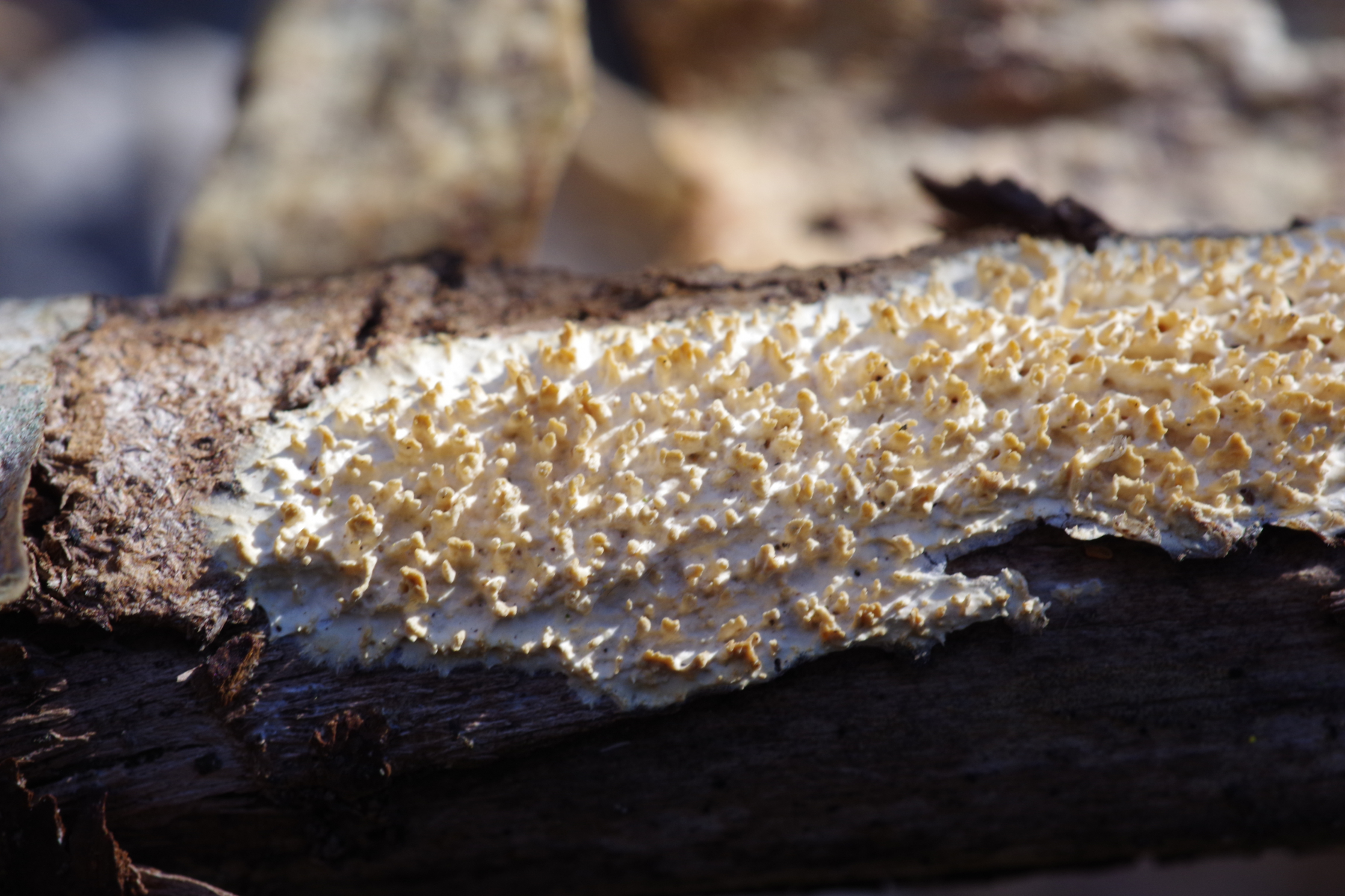 6) Ein Raspelpilz an Ebereschemast in der Streu