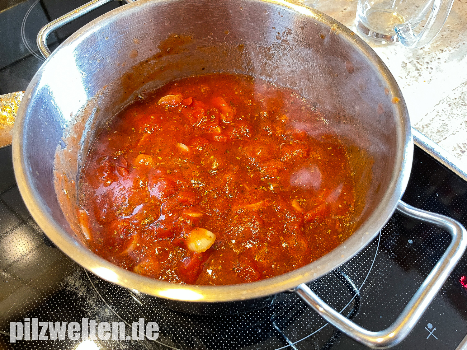Für die Soße: 1-3 Knoblauchzehen, einen Teelöffel Zucker, einen halben Teelöffel Salz, Oregano & Majoran, etwas Tabasco & Worcester Soße, 1-2 Esslöffel Olivenöl, & eine Dose stückige Tomaten. Zuerst die Knoblauchzehen im Olivenöl anschwitzen und kurz danach die Dosentomaten hinzugeben und einmal richtig aufkochen lassen. Danach die Gewürze, Tabasco & Worcester-Soße dazu geben. Auch hier kann man die Soße bereits Vortag vorbereiten und dann über Nacht richtig durchziehen lassen, dann schmeckt sie am nächsten Tag noch intensiver.