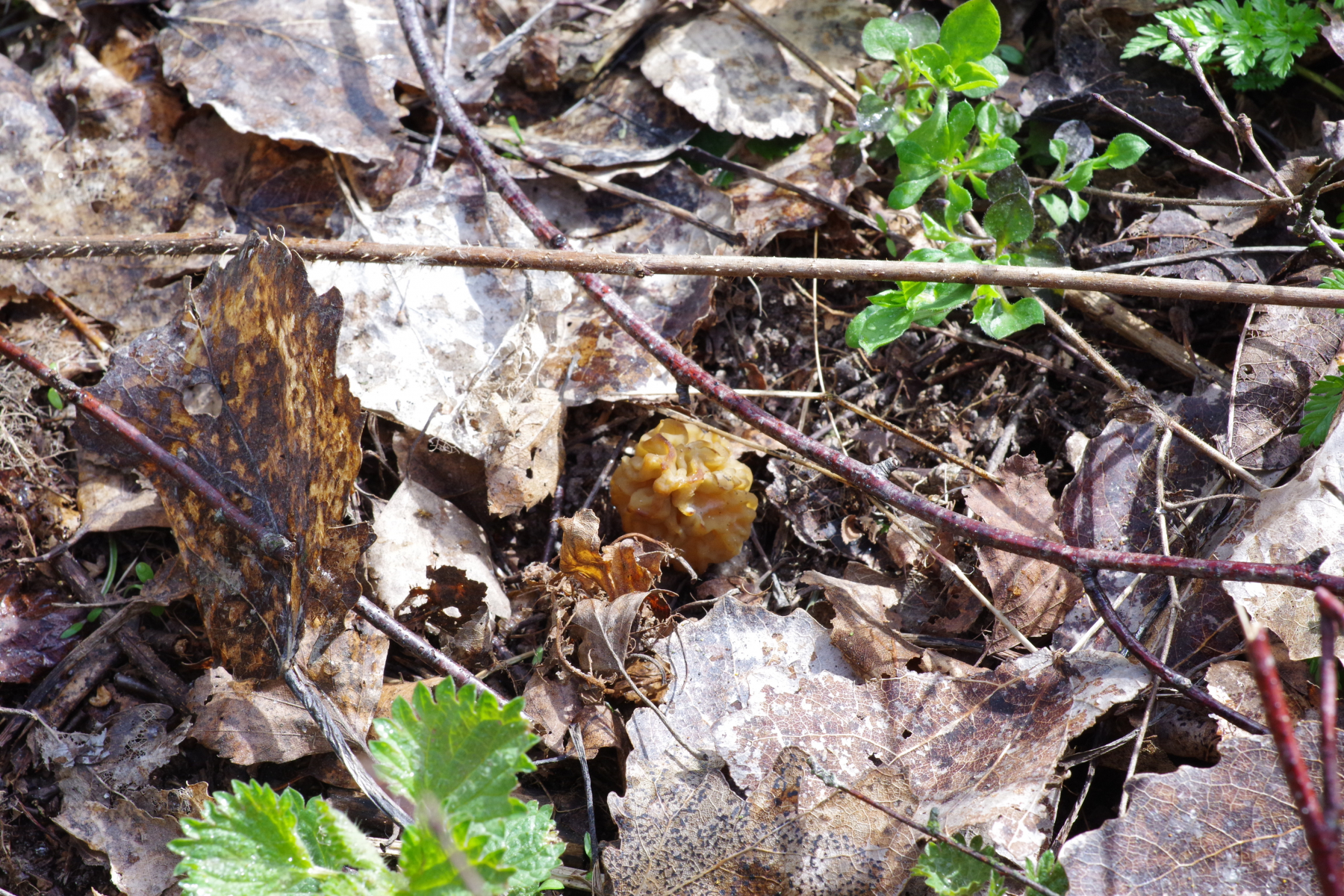 Und dann gab es da noch diesen nicht ganz so taufrischen Pilz, soweit erkennbar auf Erde, nicht auf Holz wachsend. Ohne ausgeprägten Geschmack.