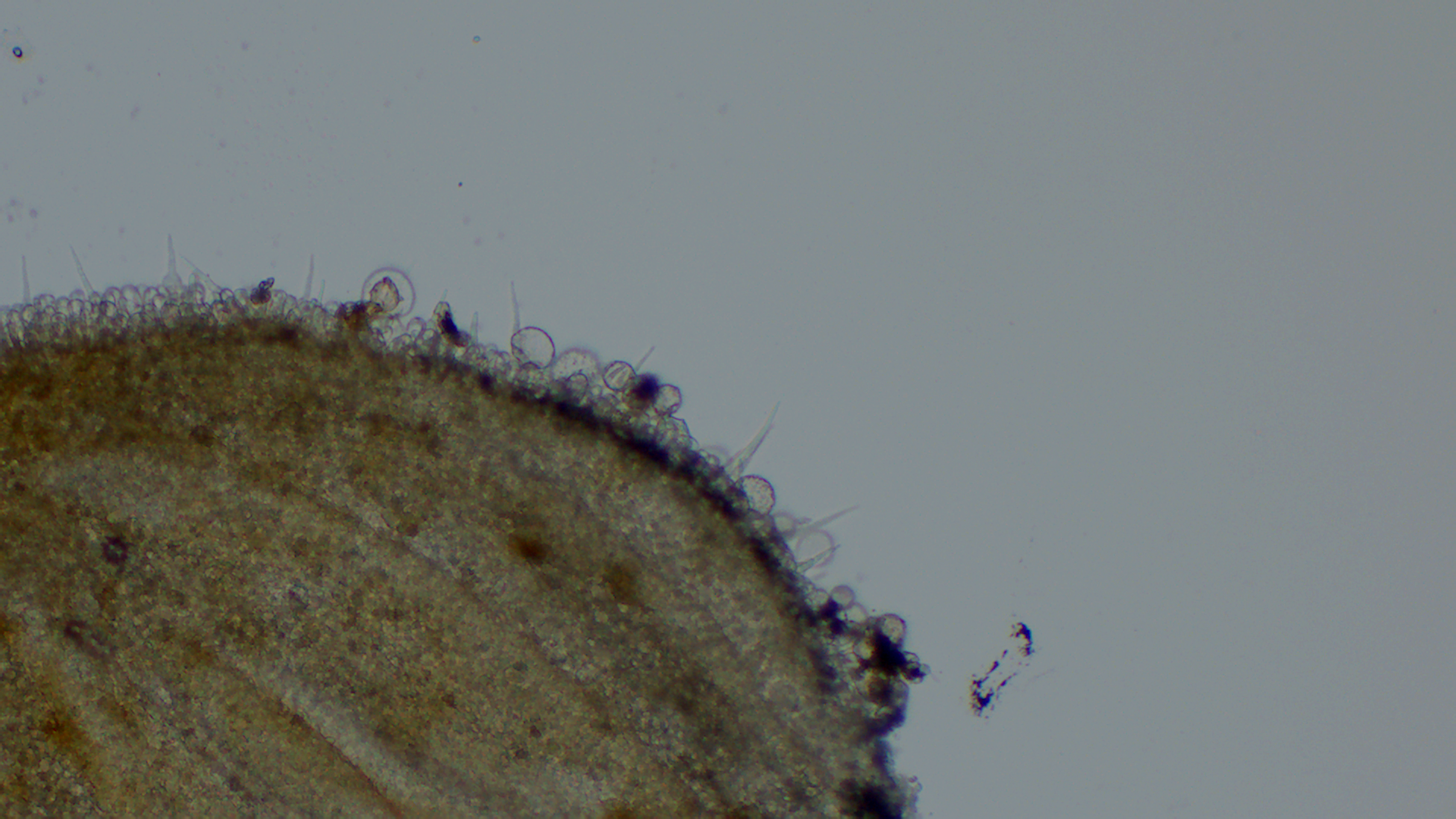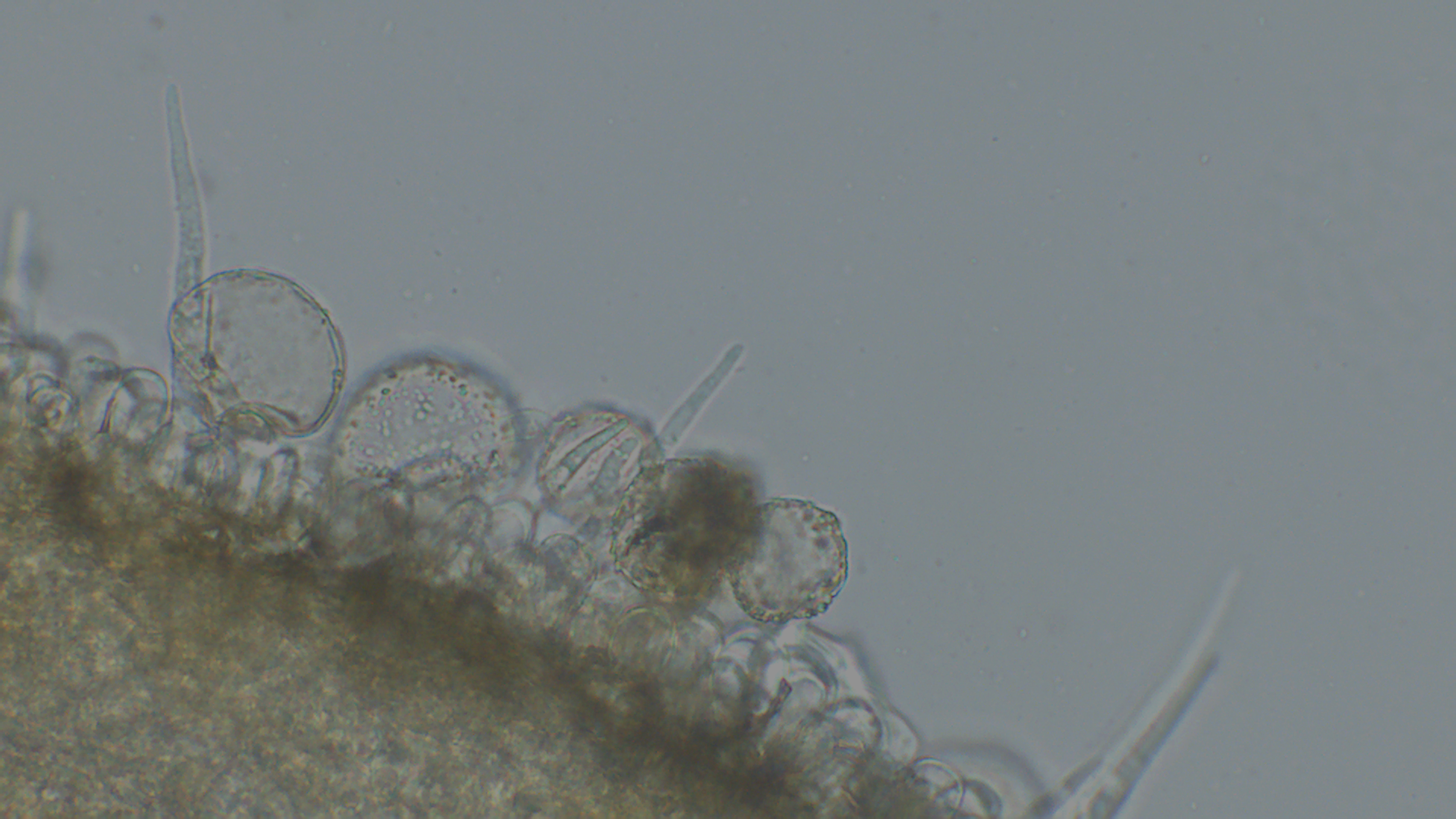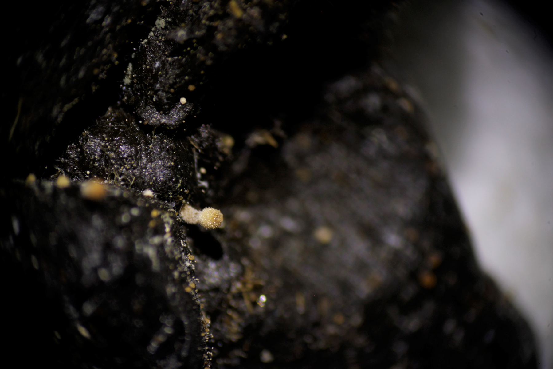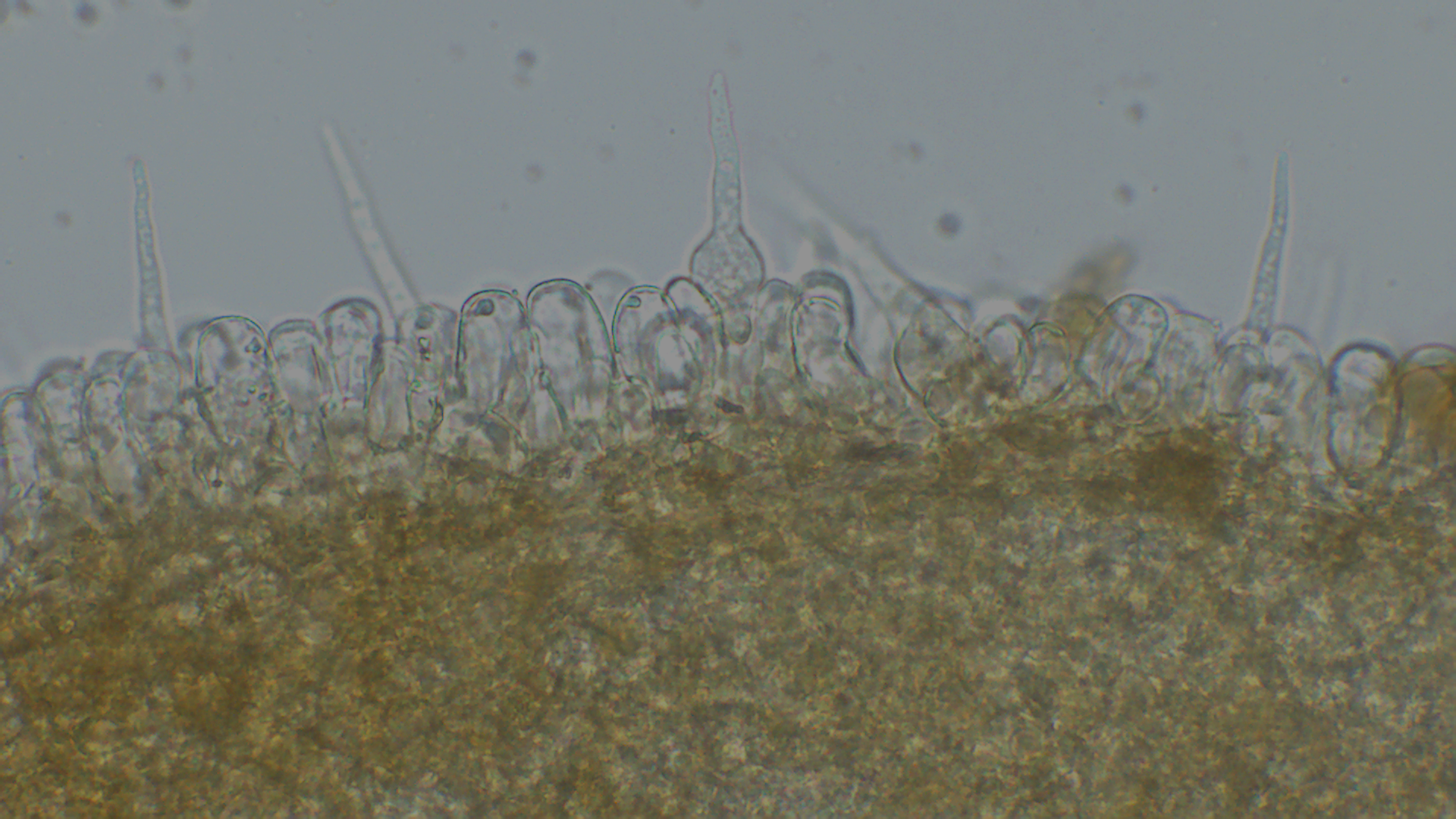 In letzter Zeit kommen sehr viele winzige Tintlinge hervor, die, wenn sie einmal in die Höhe geschossen sind, auch direkt wieder umknicken, weshalb ich leider nur Fotos von jungen Fruchtkörpern habe. Man kann makroskopisch schon erahnen, dass sie Pileozystiden haben. Tja, das Mikroskopieren ist dann nicht so einfach für mich. Ich schaffe es nicht, Lamellen und Hut zu trennen, weshalb nun auf den Mikrofotos alles zusammengeschoben ist. Ich denke, dass die Zystiden auf den Fotos von der Huthaut stammen und dann würde ich den Fund als Coprinellus pusillulus bezeichen.