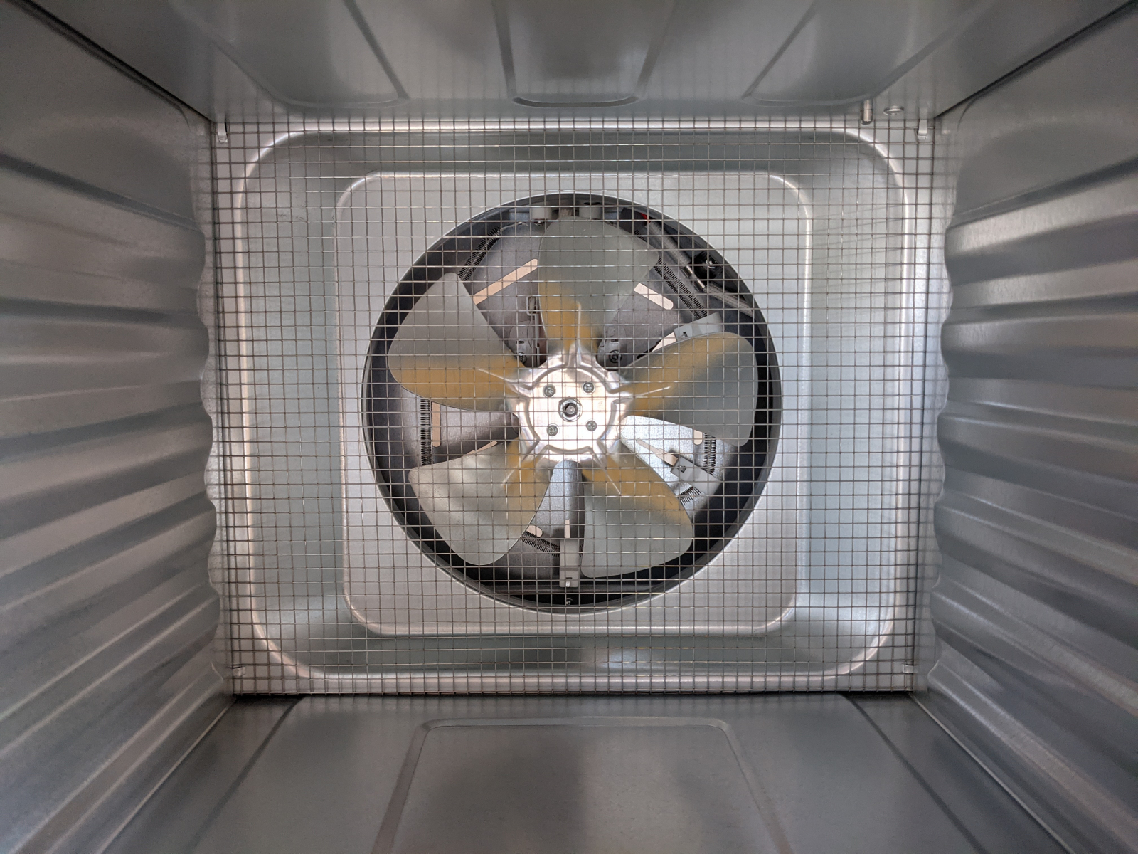 Wie reinige ich den Ventilator auf der Rückseite von den Pilzsporen? Weil ich als nächstes Bananenchips probieren möchte, habe ich den Automaten im Inneren mit einem feuchten Lappen ausgewischt und dabei festgestellt, dass alles mit einem leichten orangefarbenen Pulver überzogen ist. Außerdem sind die Flügel des Propellers vom Lüfter ebenfalls orange verfärbt. Da ist aber ein Gitter davor, also komme ich nicht dran.