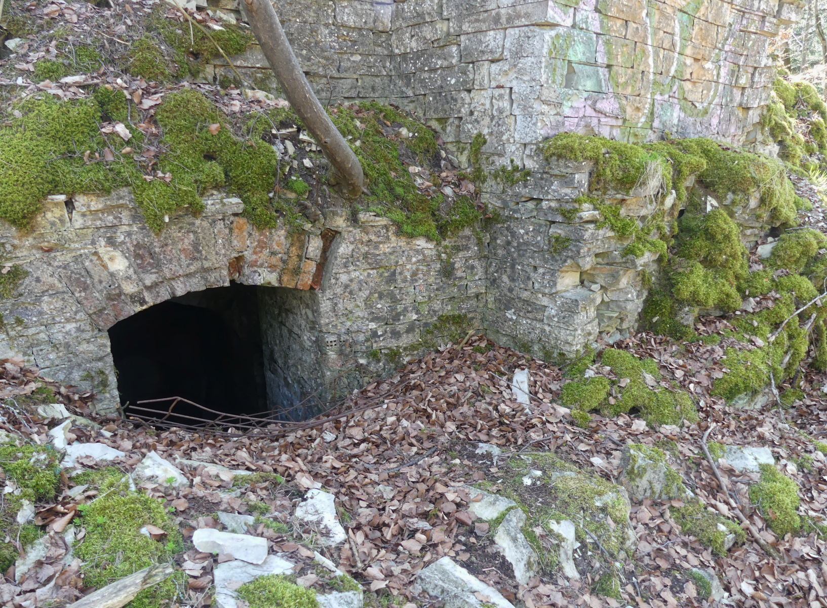 Ganz oben auf dem Berg muss einmal eine Siedlung gewesen sein von der man heute nur noch überwucherte Grundmauern sieht. Bis auf dieses Gemäuer hier, welches noch mehrere Kellereingänge aufweist. Und so etwas muss ich mir natürlich ansehen.