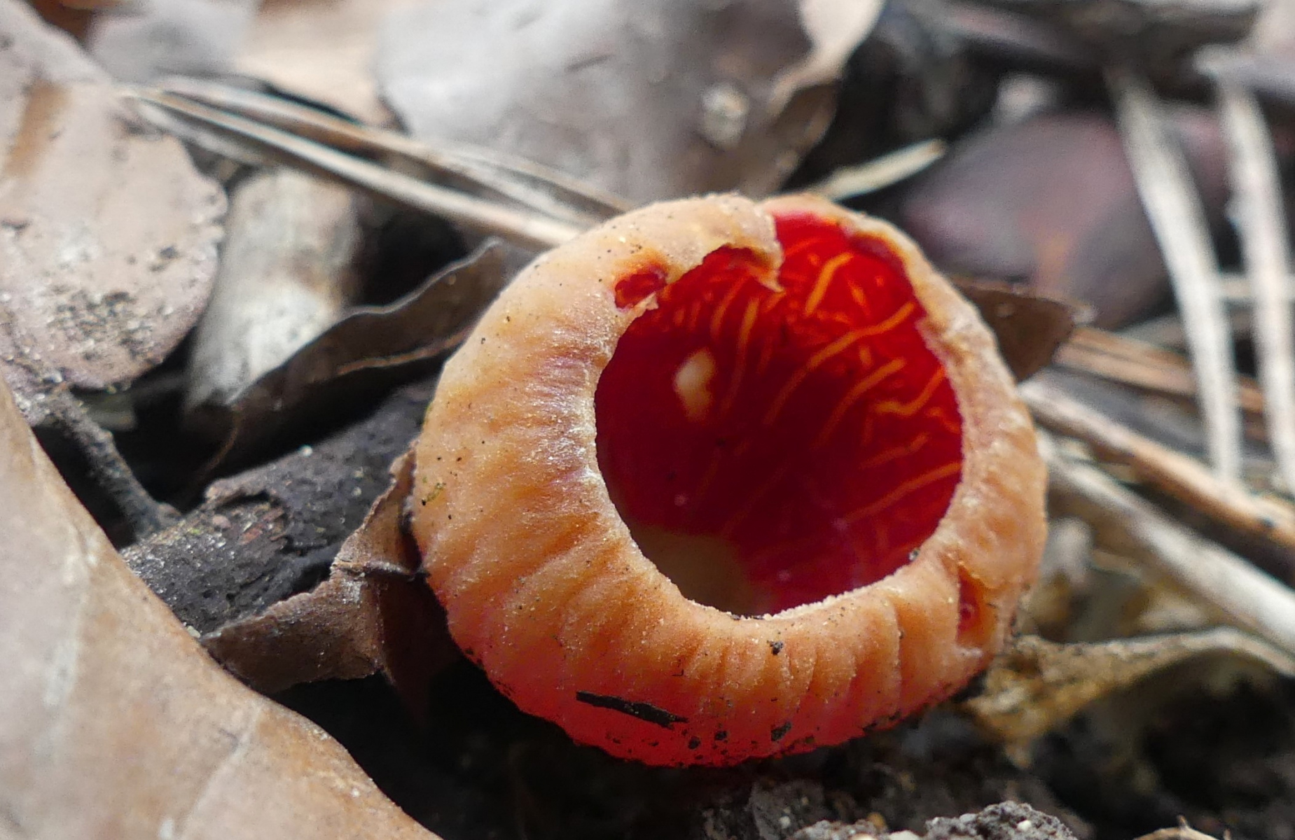 Fand ich doch diesen wunderschönen Pilz den ich schon so lange suche. Nur welcher ist es denn nun? Österreichischer Prachtbecherling oder Scharlachroter Kelchbecherling oder ...? Wir werden es nie wissen - egal, ich habe mich auch so wahnsinnig gefreut.