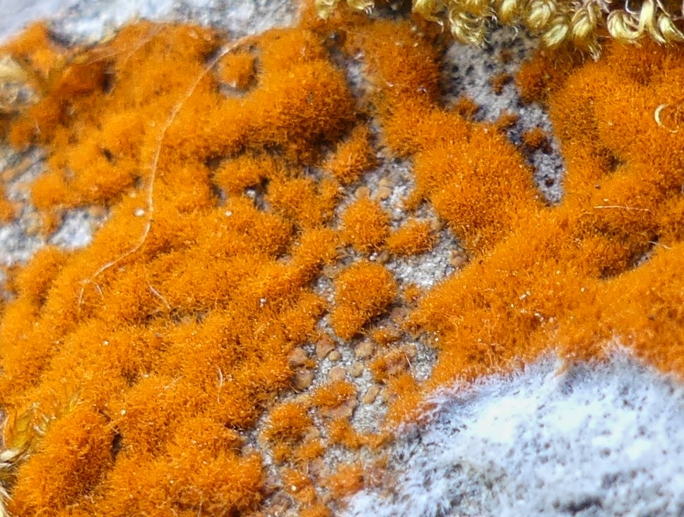 Braune Luftalge (Trentepohlia aurea) wie mir eine Freundin verraten hat.