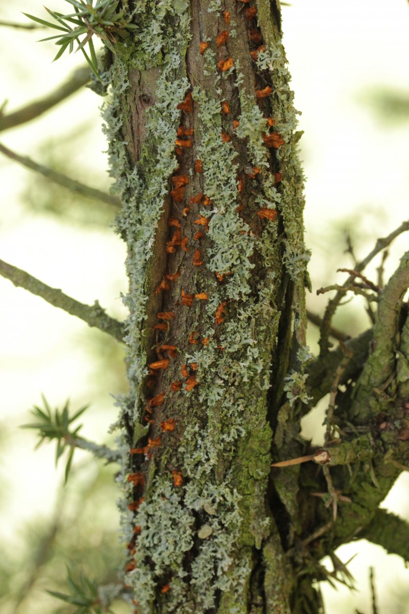 am Samstag bin ich früh aufgestanden und habe mich in den Zug Richtung Eifel gesetzt. Ziel war die Gegend bei Alendorf, wo es einerseits reichlich Kalk im Boden gibt, andererseits aber vor allem auch jede Menge Wacholderheide. Karl hatte dort vor 2 Jahren Gymnosporangium tremelloides gefunden und ich hatte die Hoffnung, den auch zu finden. Das hat sich zwar nicht bestätigt, aber dafür gab es Gymnosporangium clavariiforme und jede Menge andere tolle Funde.