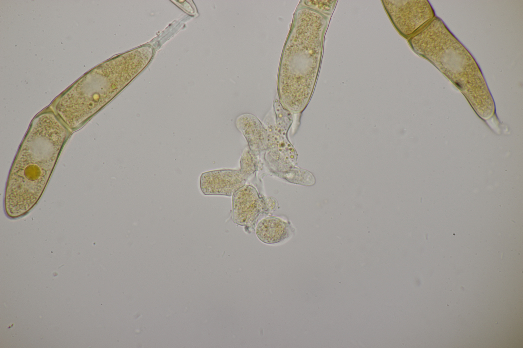 und Dein zweiter, also der Sputnik, ist mit hoher Wahrscheinlichkeit Truncatella conorum-piceae, zumindest wenn ich davon ausgehe, dass die Konidie auch von einem Pilz stammt, der an dem Zapfen wächst. Kannst danach auch mal suchen, die Art ist mikroskopisch auch sehr attraktiv. Findet man trotz des Namens übrigens auch gerne an Kiefernnadeln.