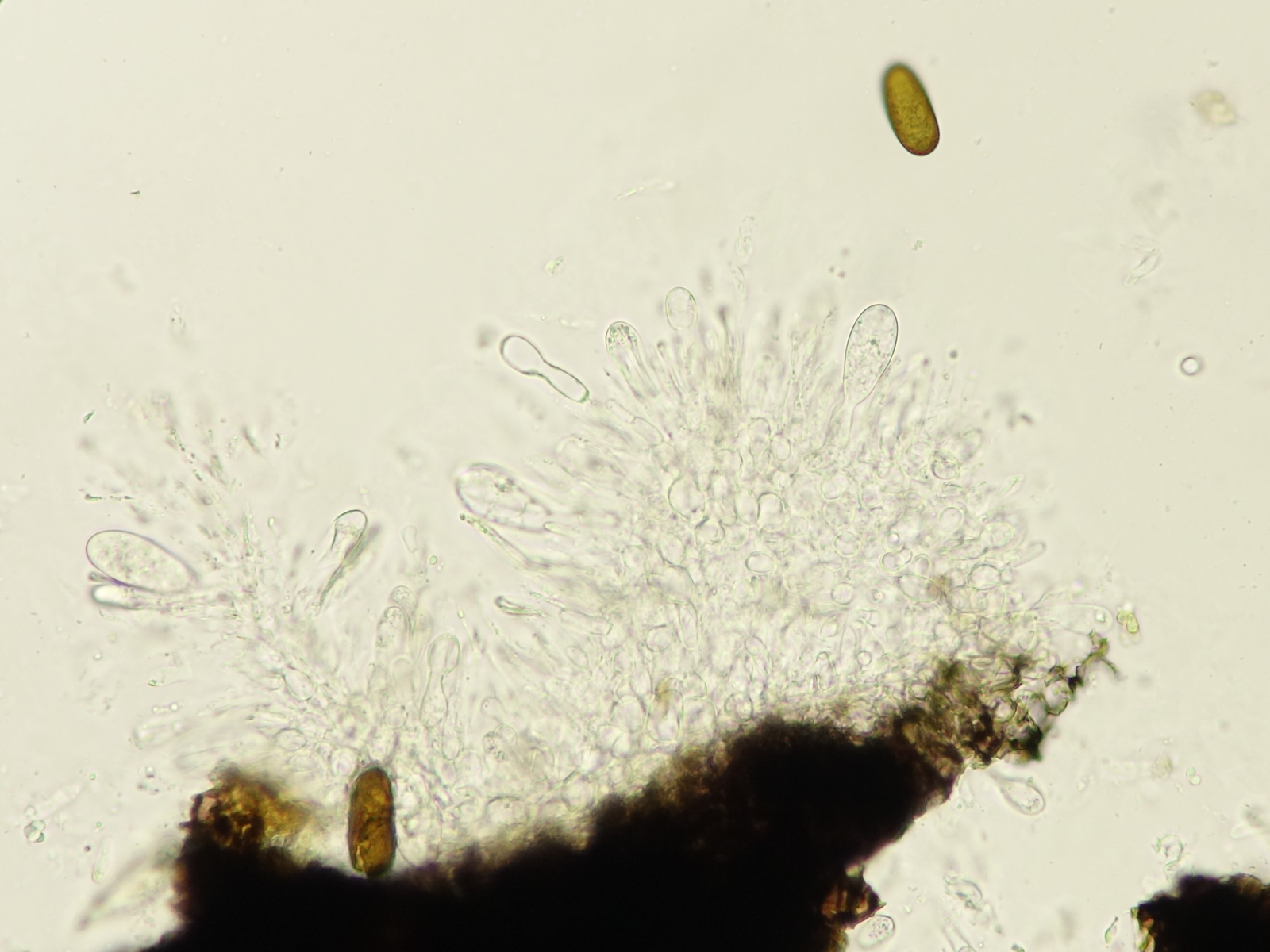 • Servus Björn, ich war hin und weg was du diesen schwarzen Pünktchen auf Fichtezapfen für geilste Sporenbilder entlocken konntest. Voller Vorfreude suchte ich mir in meinem Kiefernwald die einzigen zwei Fichten und von den 5 Zapfen die ich dort fand war sogar einer befallen. Tja nur schaut das ganze bei mir ganz anders aus. Ich vermute dass ich eine andere Fruchtform habe? Oder ist das doch was anderes als Phragmotrichum chailletii? Was muss ich tun um diese krassen Dinger zu finden?