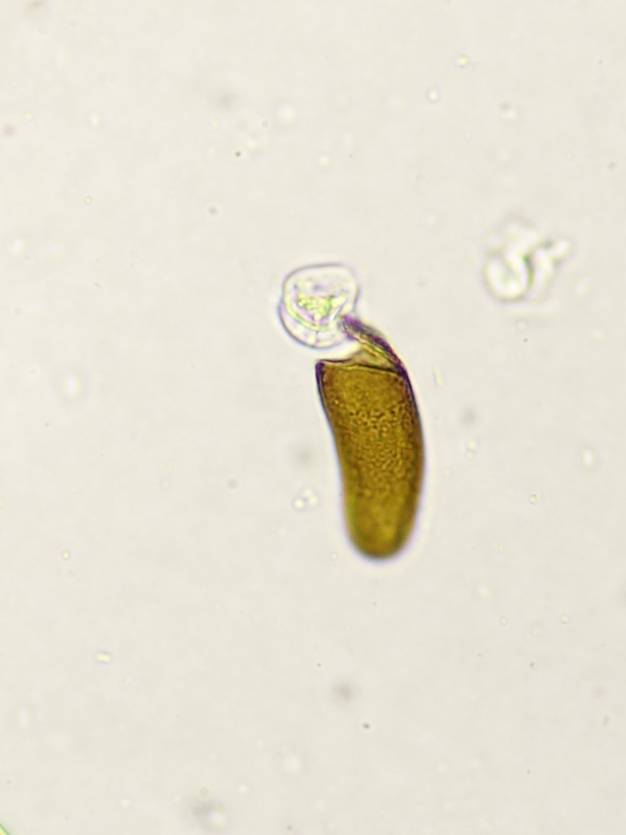 Außerdem lag das Gymnosporangium in der feuchten Kammer und hat Basidiosporen produziert: